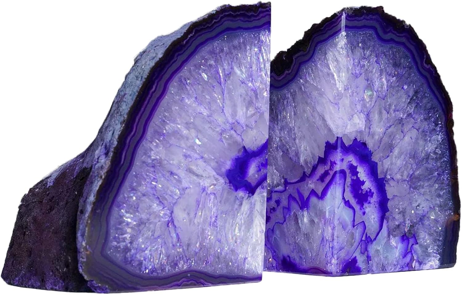 AMOYSTONE Purple Agate Bookends, Natural Crystal Gemstone Book Holders 3-4 LBS for Shelves, Stylish and Functional Bookends Gift for Women