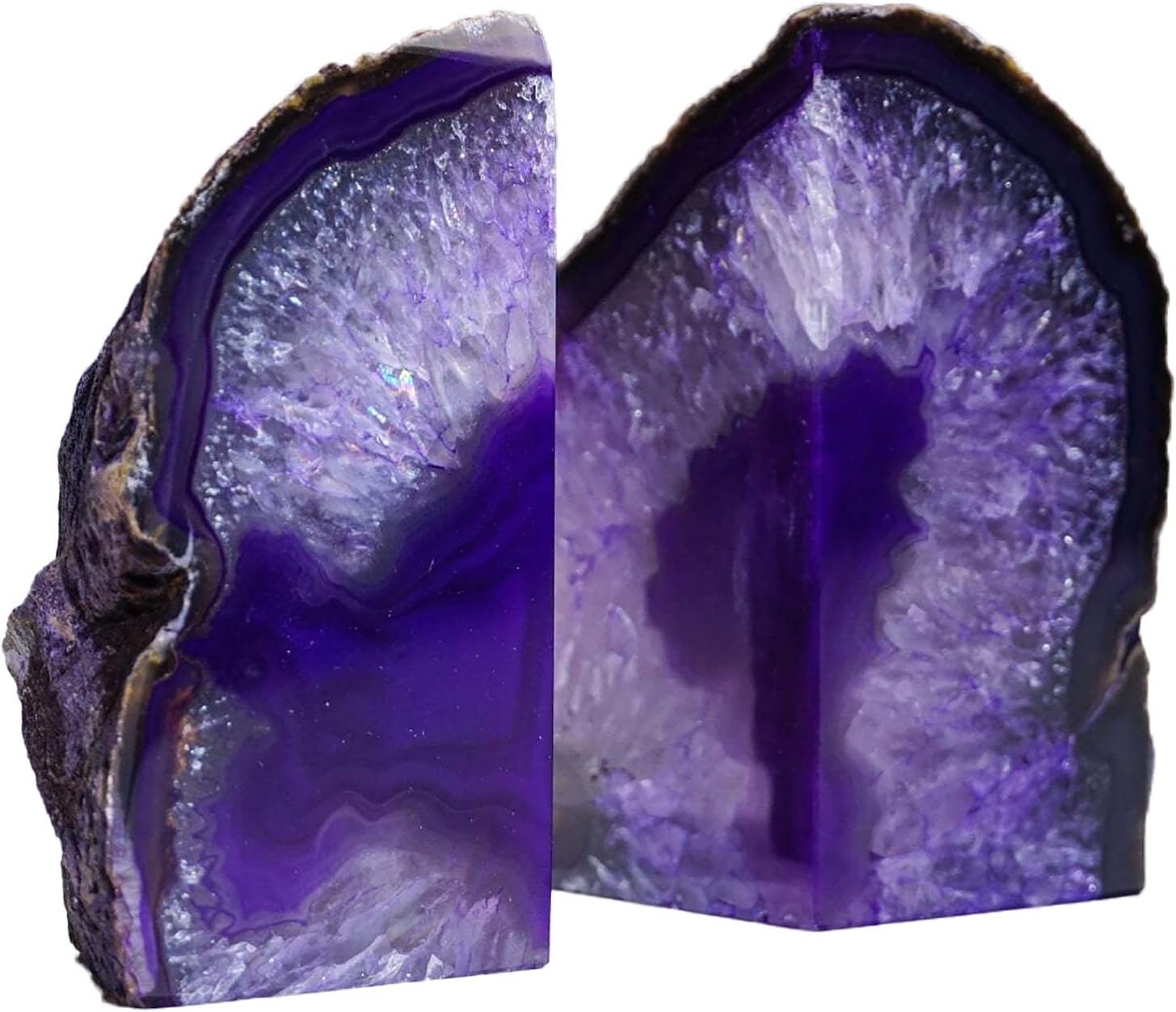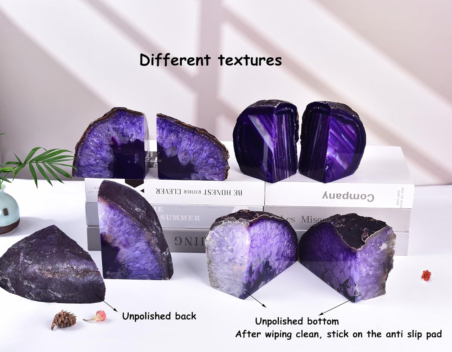 - Elegant Rock Bookends: Enhance your bookshelf or crystal altar with our decorative agate bookends. Dyed purple to adapt to various home decoration themes