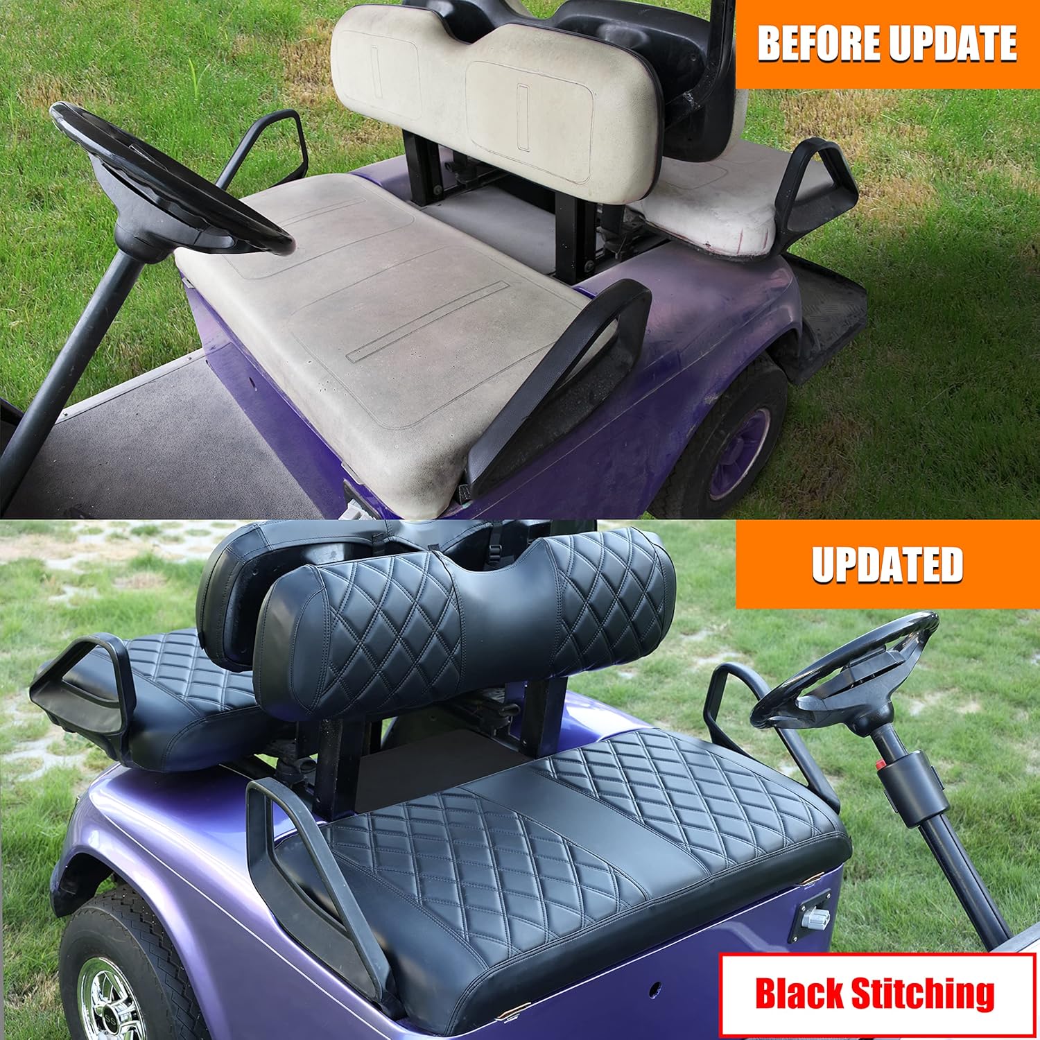 - ăFashionable DesignăGolf cart seat cover is stitched with black thread and diamond pattern patchwork to provide a higher quality look and feel. Make your cart look more luxurious.
