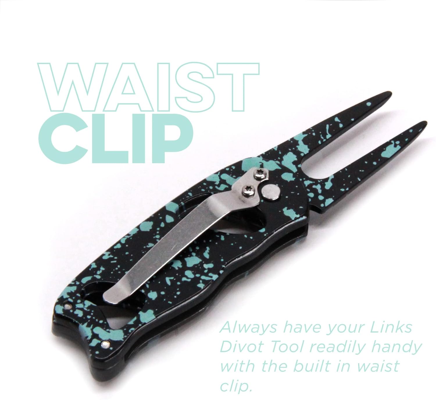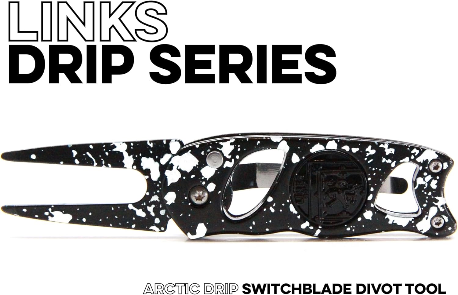 Links Golf Divot Tool with Foldable Pop-up Button & Magnetic Golf Ball Marker - Patented Golf Divot Tool and Ball Marker - Drip Collection