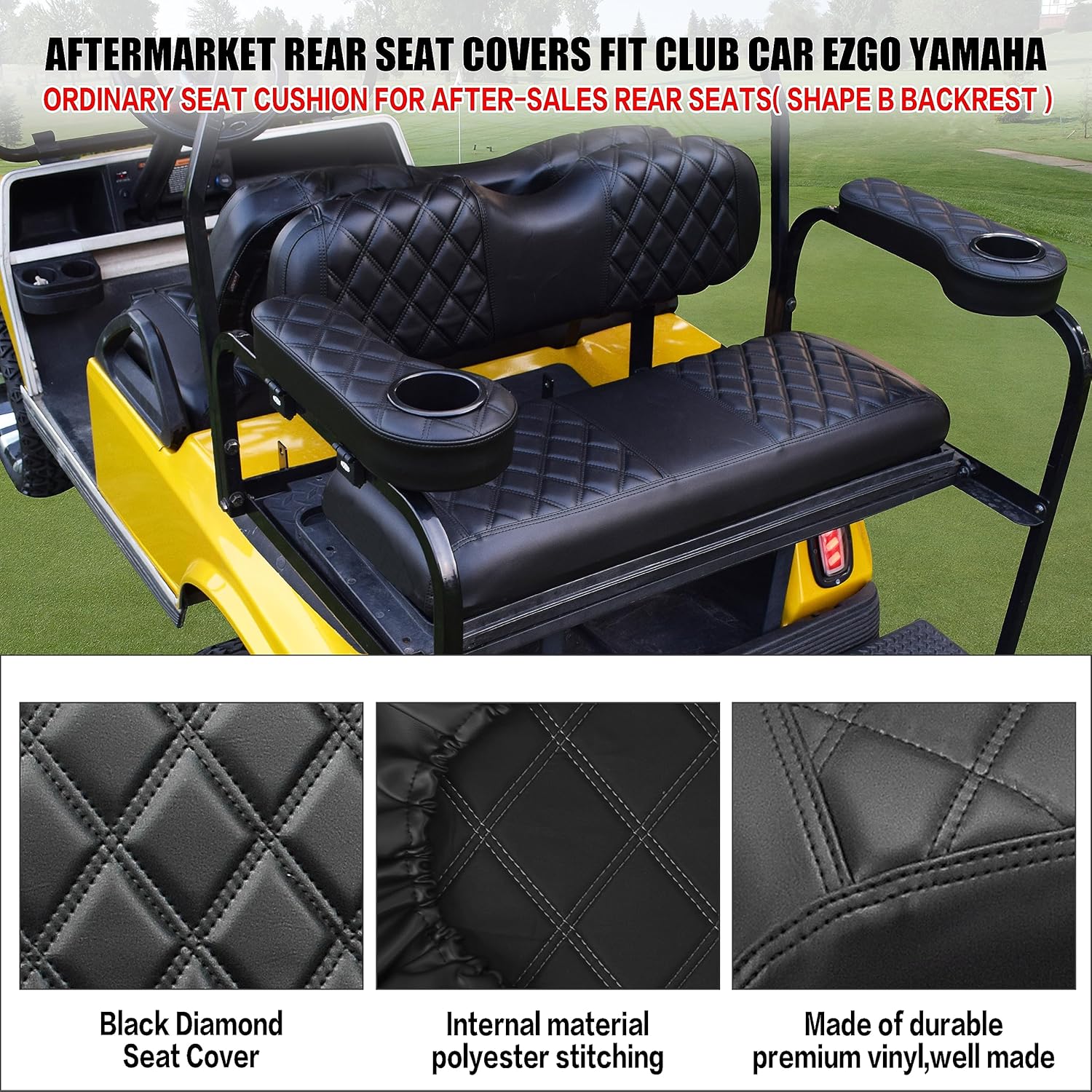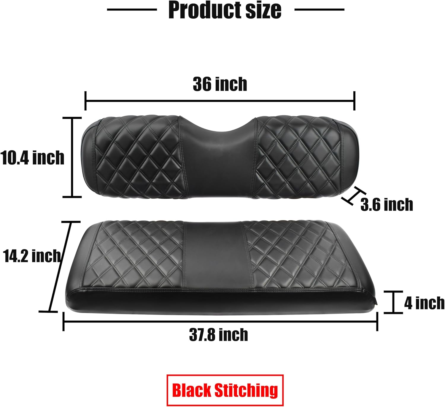 - ăApplicationăGolf car RS diamond rear seat cover, this product contains 1 rear backrest cover (about 36X 10.4 X 3.6 inches) and 1 rear seat cover (about 37.8X 14.2X 4 inches), suitable for aftermarket rear seat kit with Standard seat cushion, not for Premium thick seat cushion, please measure your seat size before purchase.