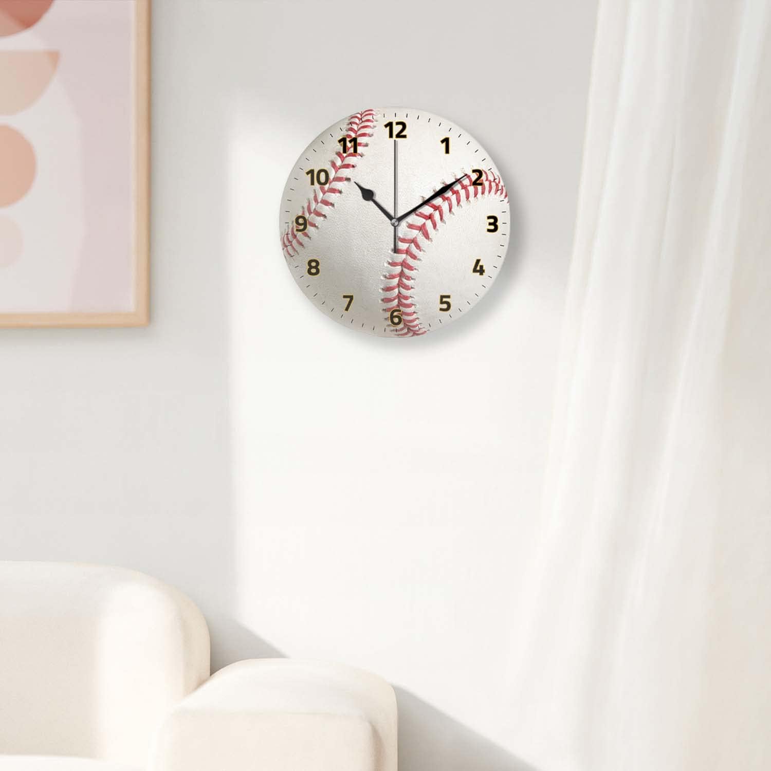 Battery Operated Wall Clocks 12 Inch,Baseball,Silent Home Decor for Bathroom,Living Room,Bedroom