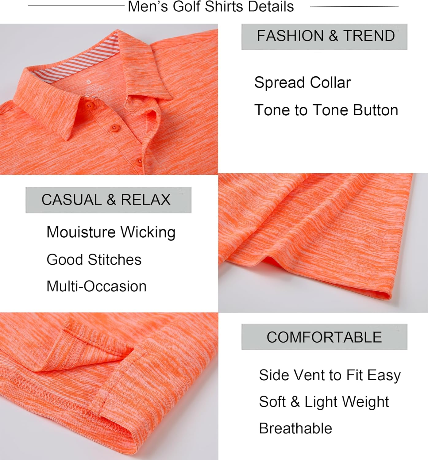 • Material: Our Mens Golf Shirts are made from 85%Polyester 15%Spandex, Light Weight, UPF40+, Quick Dry, Moisture Wicking, Soft, Breathable, Extremely comfy to wear the whole day. Can't beat the quality of this shirt