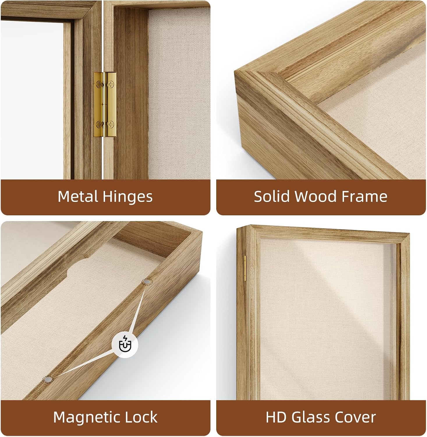- Magnetic Door - The wood shadow box has side suction design, you can easily open the display box at any time to change or update the content. Please note: The actual product texture may be slightly vary from the picture due to the special hand-made process.
