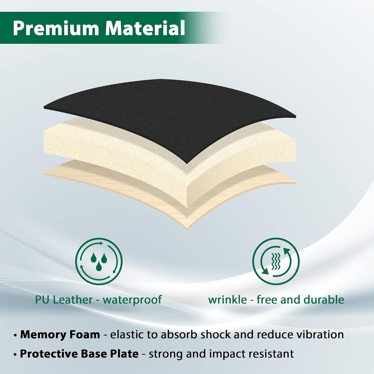 - Premium resilient memory foam material that absorbs shock and reduces vibration. Provides comfort for the driver and passengers.