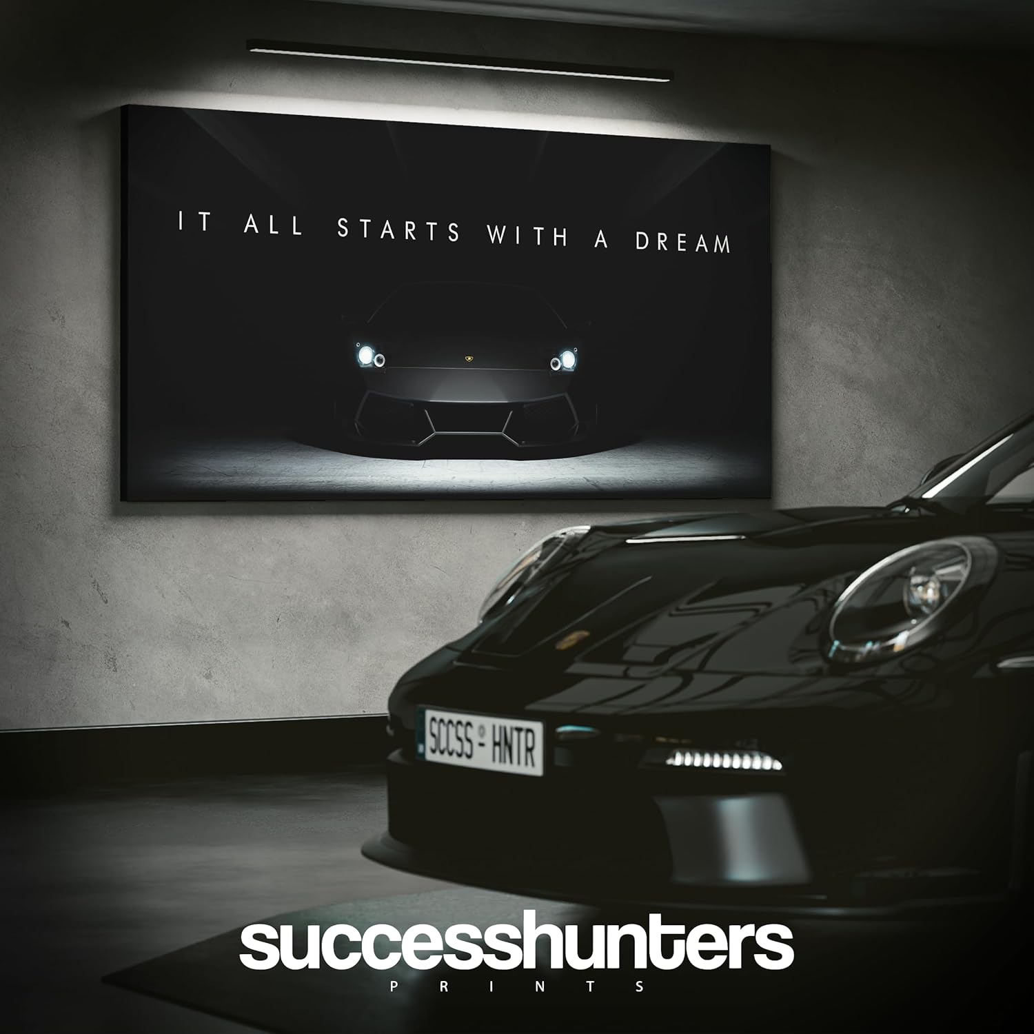 Motivational Wall Art for Office, Super Car Art Canvas, Inspirational Automotive Decor for Lamborghini Sportscar Lovers, Motivational Wall Decor for Office and Home, Inspiring Car Poster (60 X 30 in)