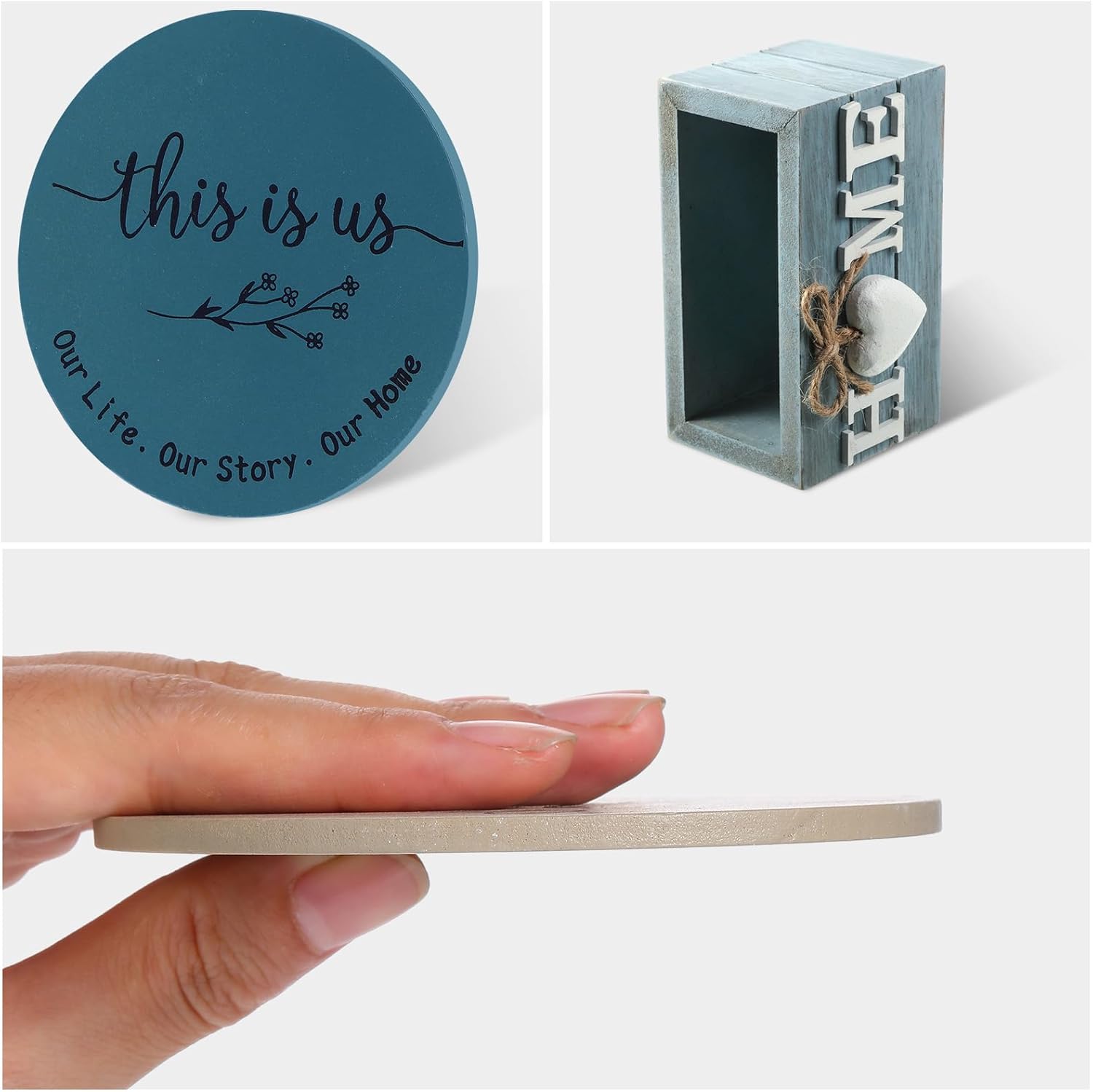 - Convenient to Store: the farmhouse coasters for coffee table measure approx. 10 cm/ 4 inches in diameter and paired with a 11.5 x 5.5 x 6.5 cm/ 4.53 x 2.17 x 2.56 inches holder, which is nice for store without taking up too much space
