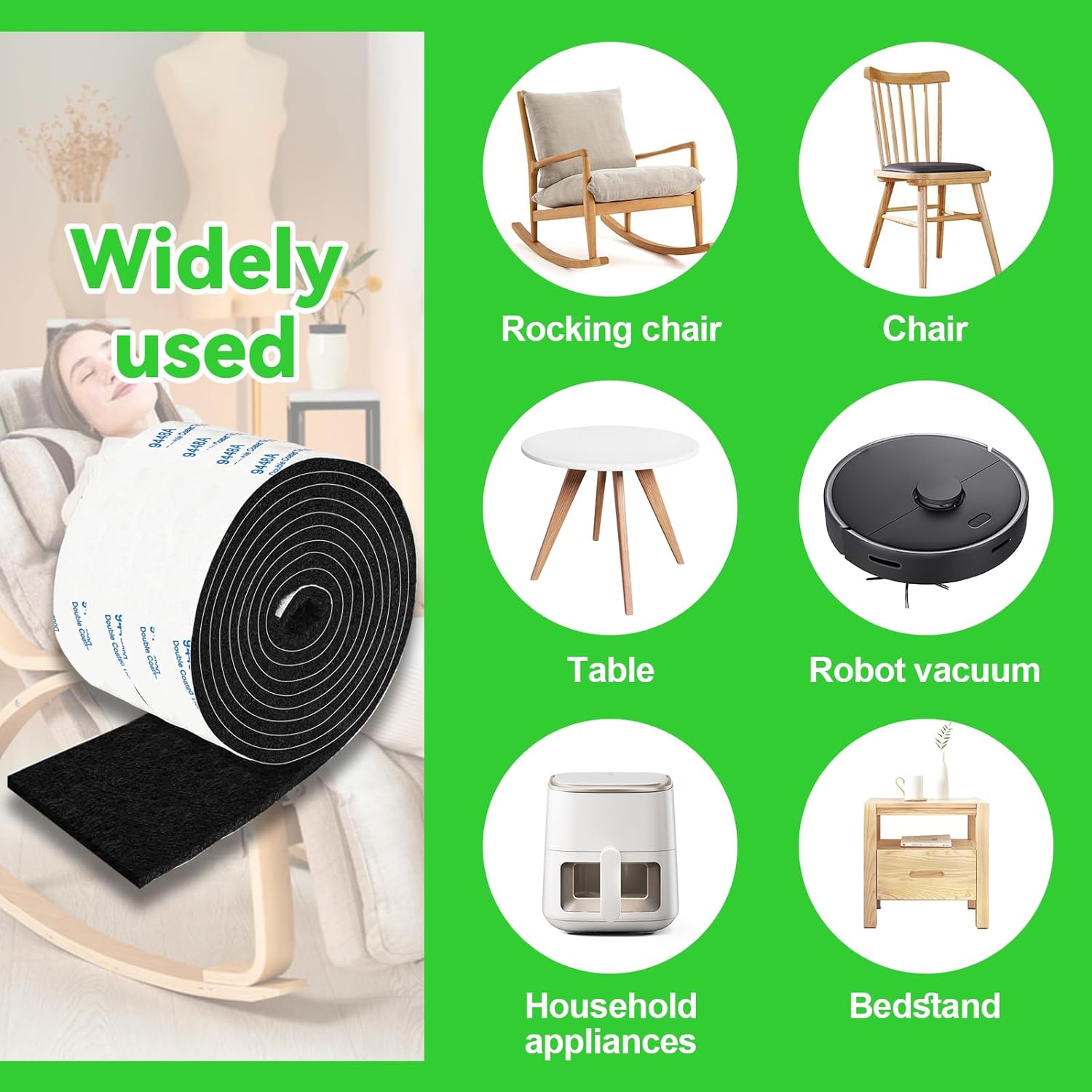 - ✅ 【EXTREMELY ADHESIVE】 Heavy duty 3mm thick and soft felt strips with an extremely sticky backing. We use only the best materials for our felt strips so rest assured that our felt strips will serve you in the long run. They are made of sturdy felt and strong adhesive that will stick and make sure it stays on the legs after moving the furniture.