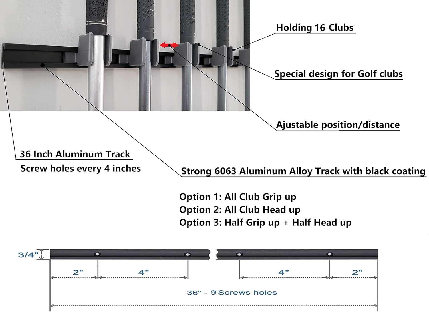 [JINTECH] Golf Club Holder, Wall Display, Wall Hanger, Rack, Mount, Organizer, Hold 16 Clubs on 36" Aluminum Rack (All Grip up)