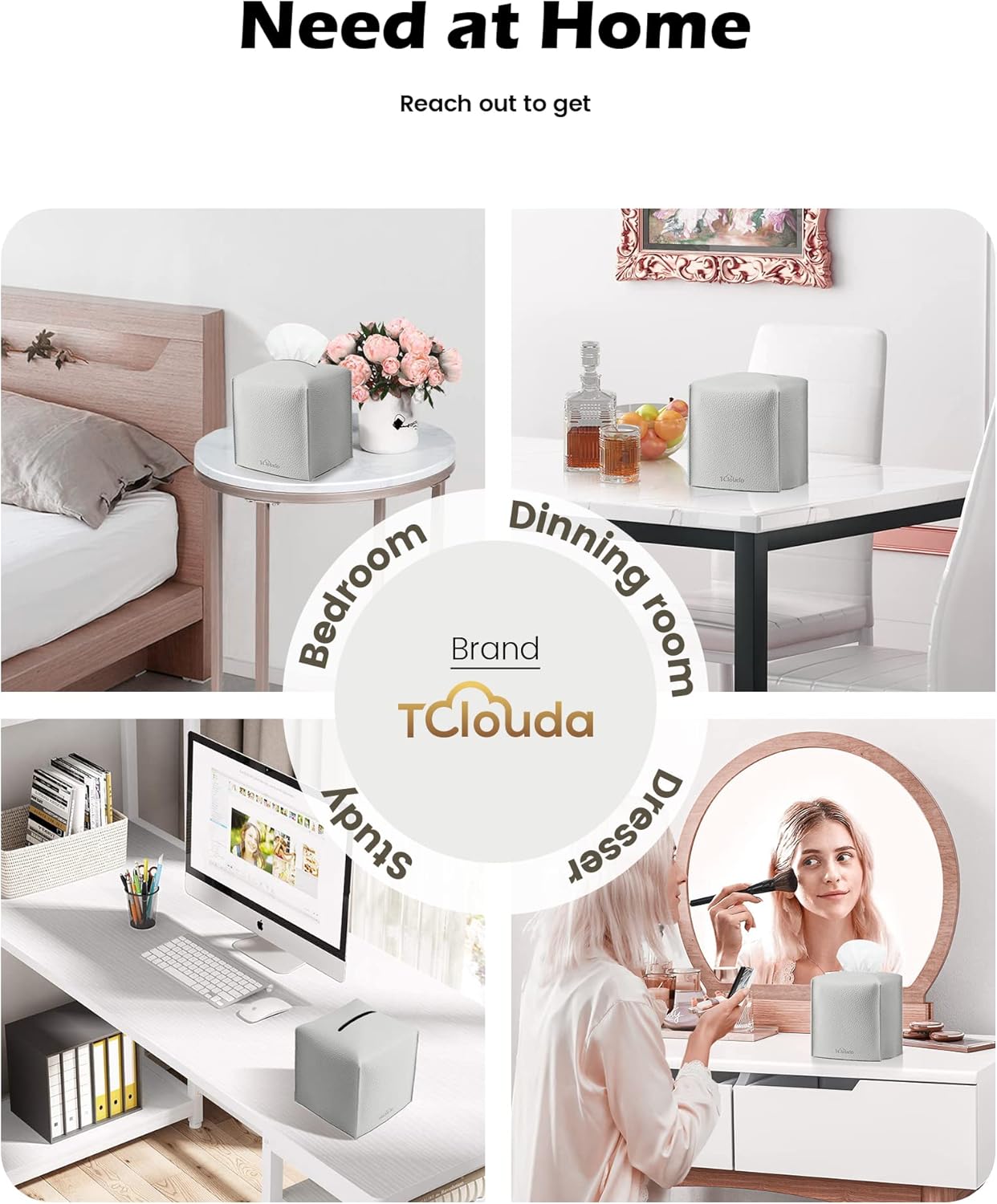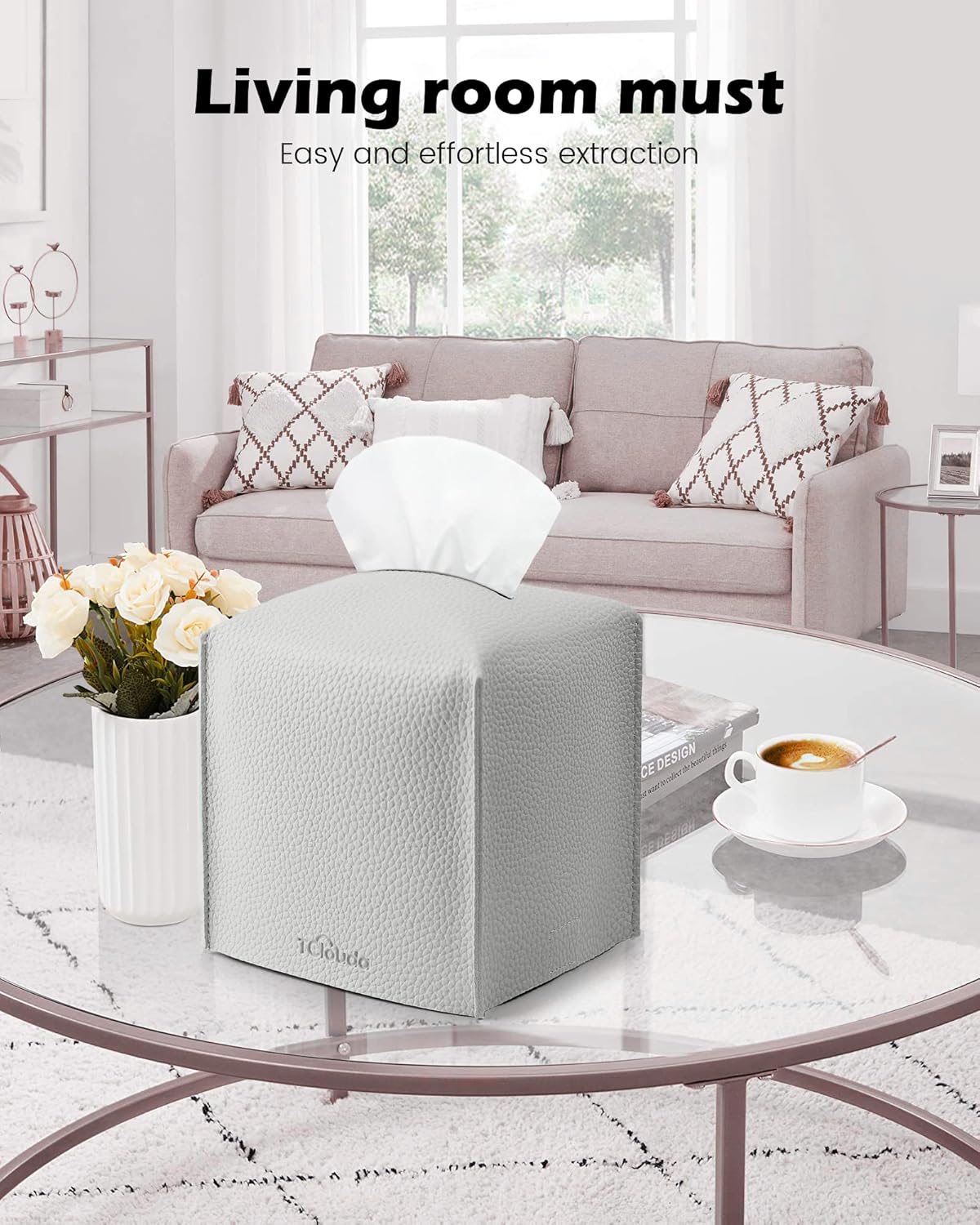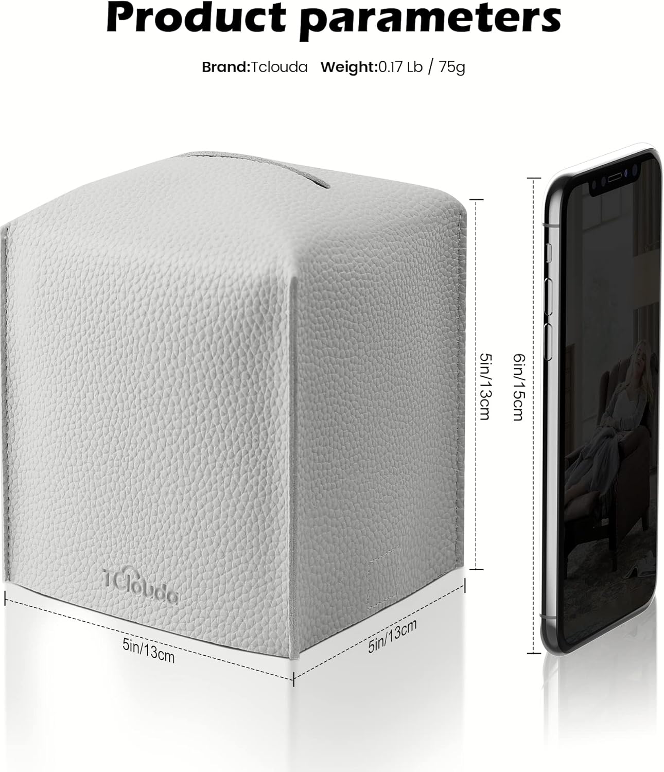 Tissue Box Cover for PU Leather, Modern Simple Solid Color Holder Square Tissue Bag, Ideal for Bathrooms,Office,Car,Outdoor Tent,Dining Table,5"X5"X5", Double Light Grey