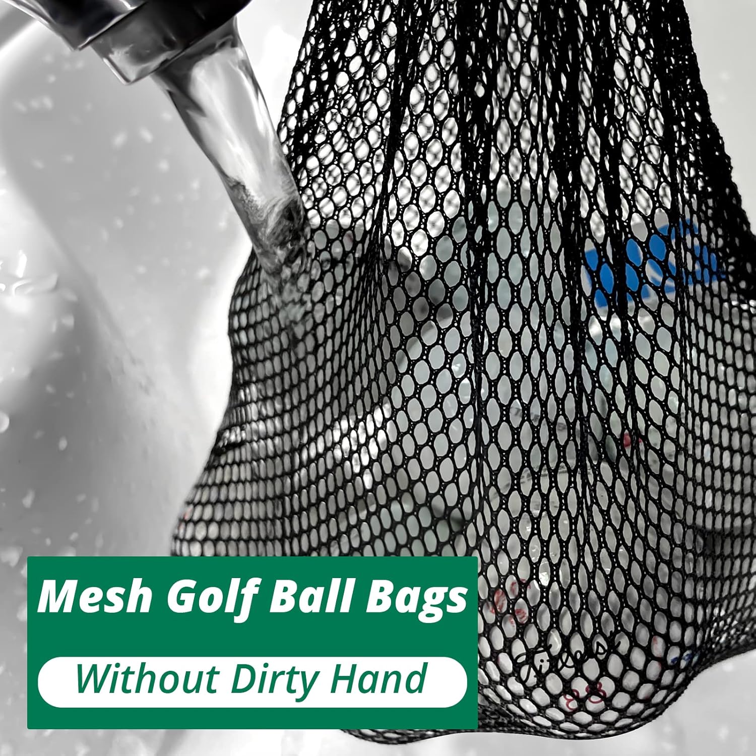 - 【Breathable & Lightweight】Mesh design, you can easily to wash the dirty golf balls at the water by use it without make hand dirty, air to flow through the bag to making wetty gear quickly dry, without leaving behind unpleasant smells in the stuff of mesh net bag.