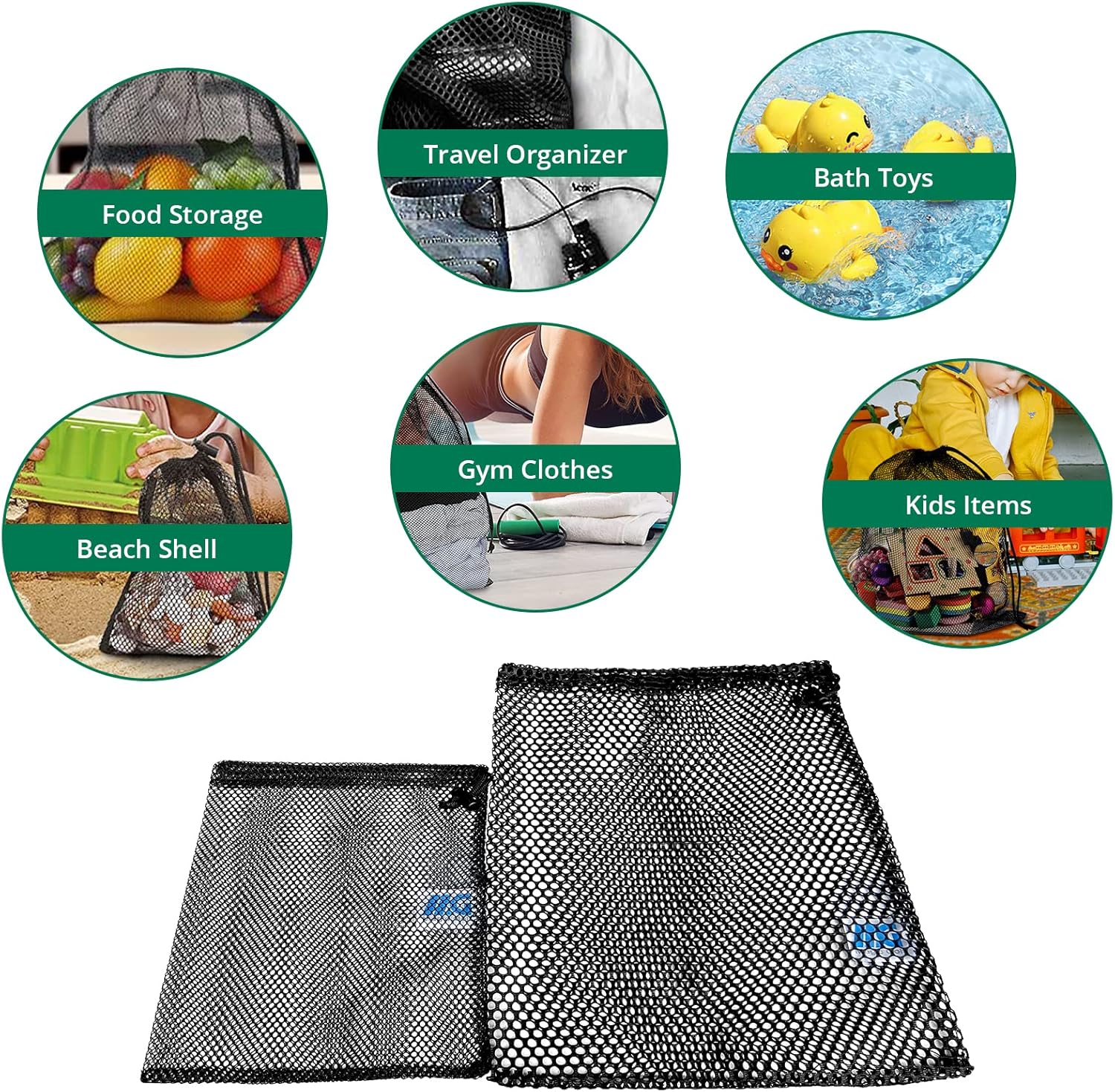 - 【Wide Application】The nylon storage mesh bags are ideal for gym, shower, washing toys, beach, travelling and more occasions, they can also be applied to carry sports items, balls, hold shells, stones, sea-glass and more things you want to organize.