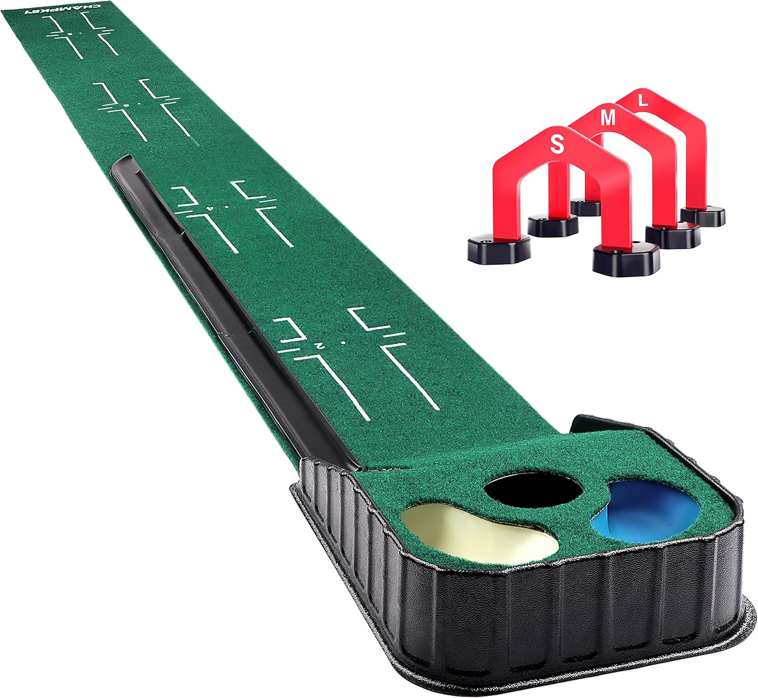 CHAMPKEY Golf Putting Green Indoor - Advanced Guides Golf Putting Mat - Enhance Putting Accuracy and Challenge
