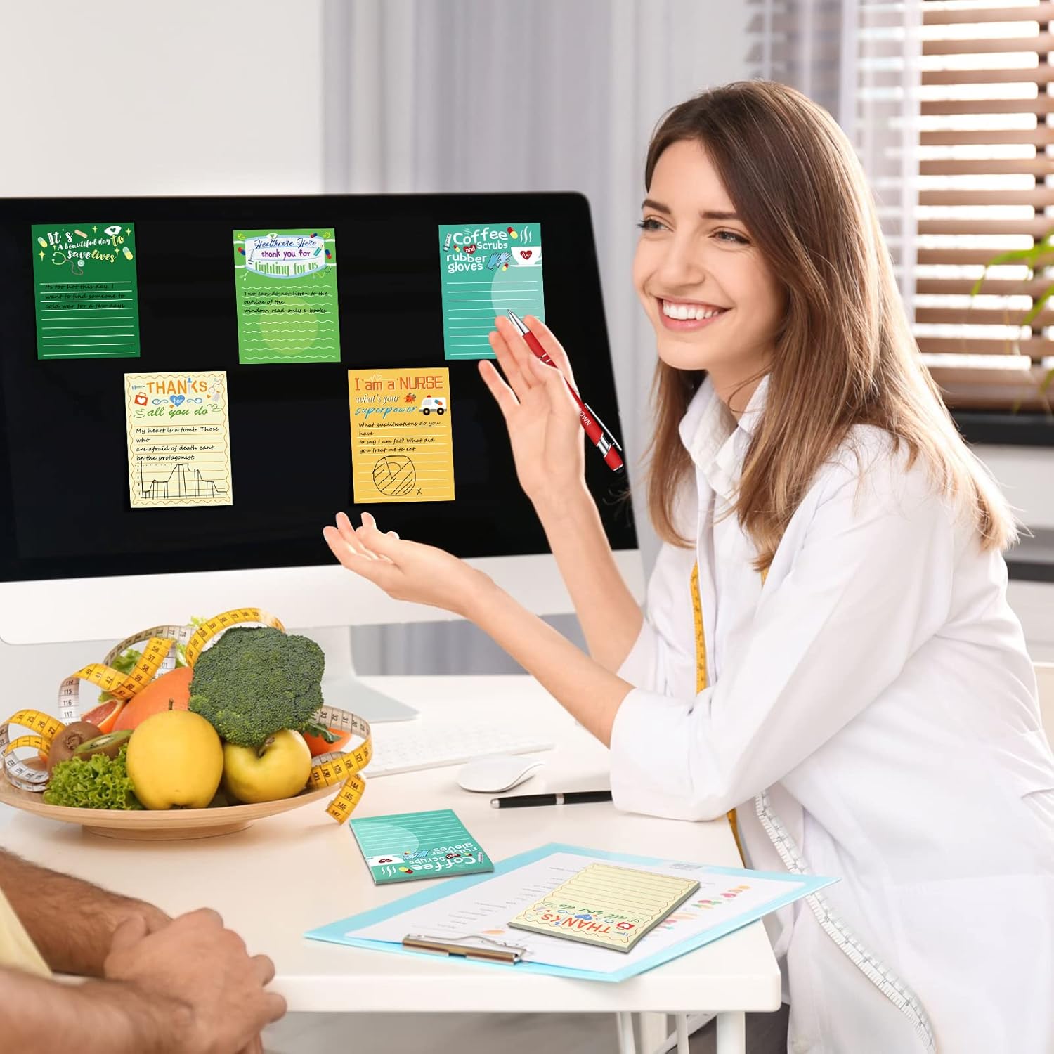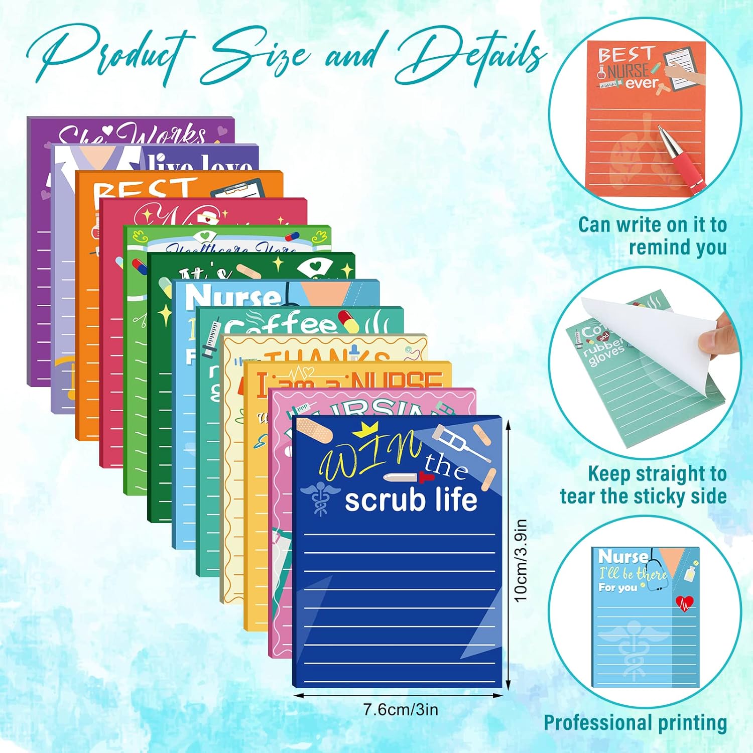 Geyee 24 Pcs Nurse Sticky Notes with Funny Pens Fun Notepads for Adults Coworkers Nurse 3 x 4 Inch to Do List Notepads with Sayings Pen for Lab Week Gifts Teacher Office Supplies