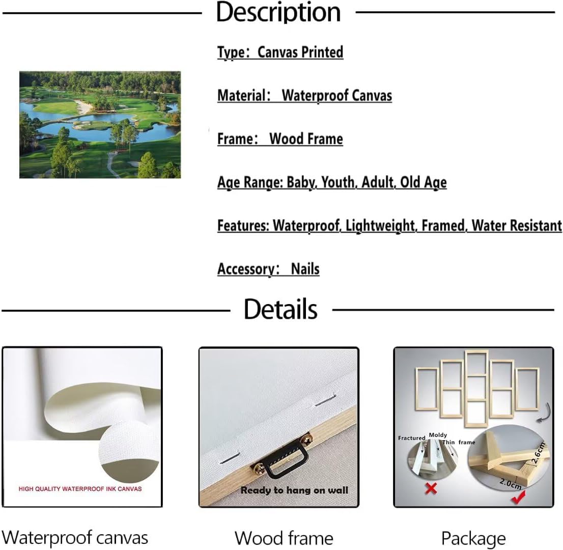 - 💝Golf course canvas wall art will decoration your living room, bedroom,gym room,office,church,hallway,kitchen or farmhouse, dormitory and other wall decorations better than better, you can enjoy the golf course pictures every day.