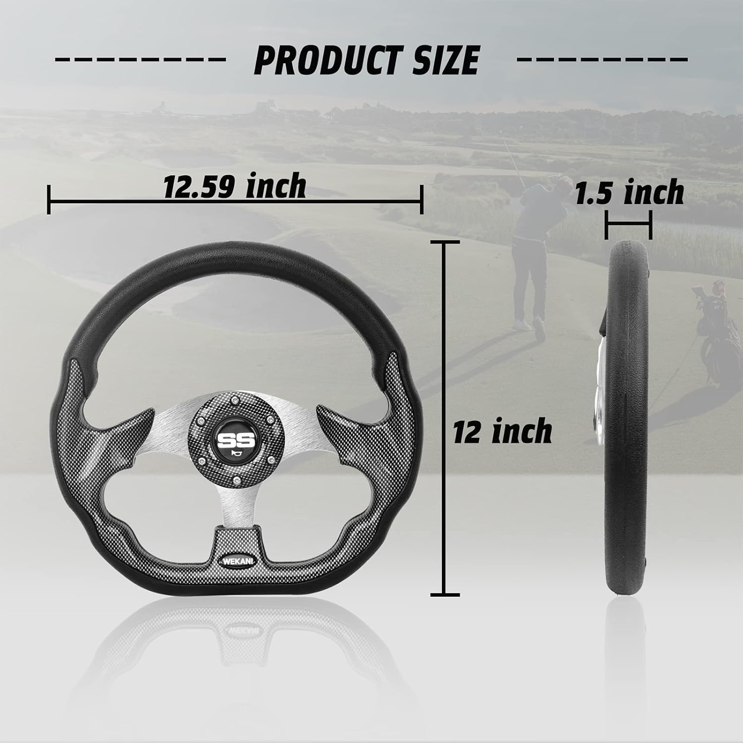 - 【Wide range of applications】The 12.5 inch cool racing steering wheel is applicable to EZGO, Club Car, Yamaha golf carts and most golf carts in the market (excluding adapters, the steering wheel needs to be equipped with WEKANI adapters)