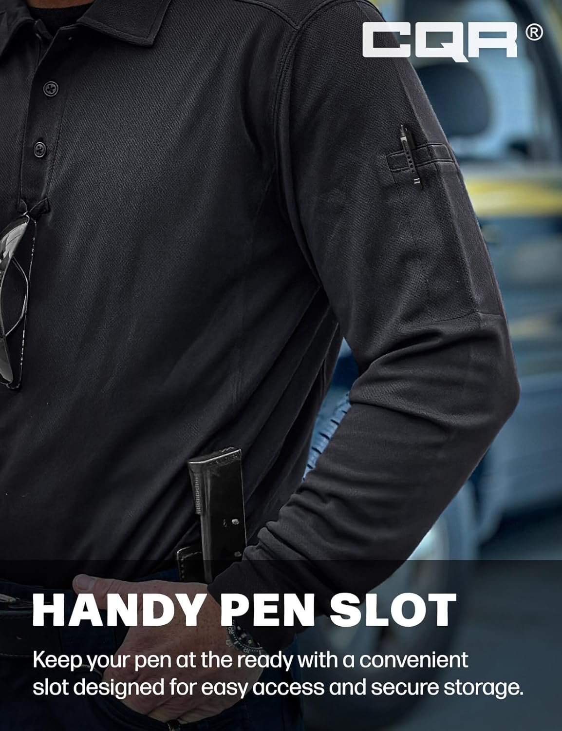 CQR Men's Polo Shirt, Long Sleeve Tactical Shirts, Outdoor UPF 50+ Pique Shirt, Dry Fit Lightweight Golf Shirts