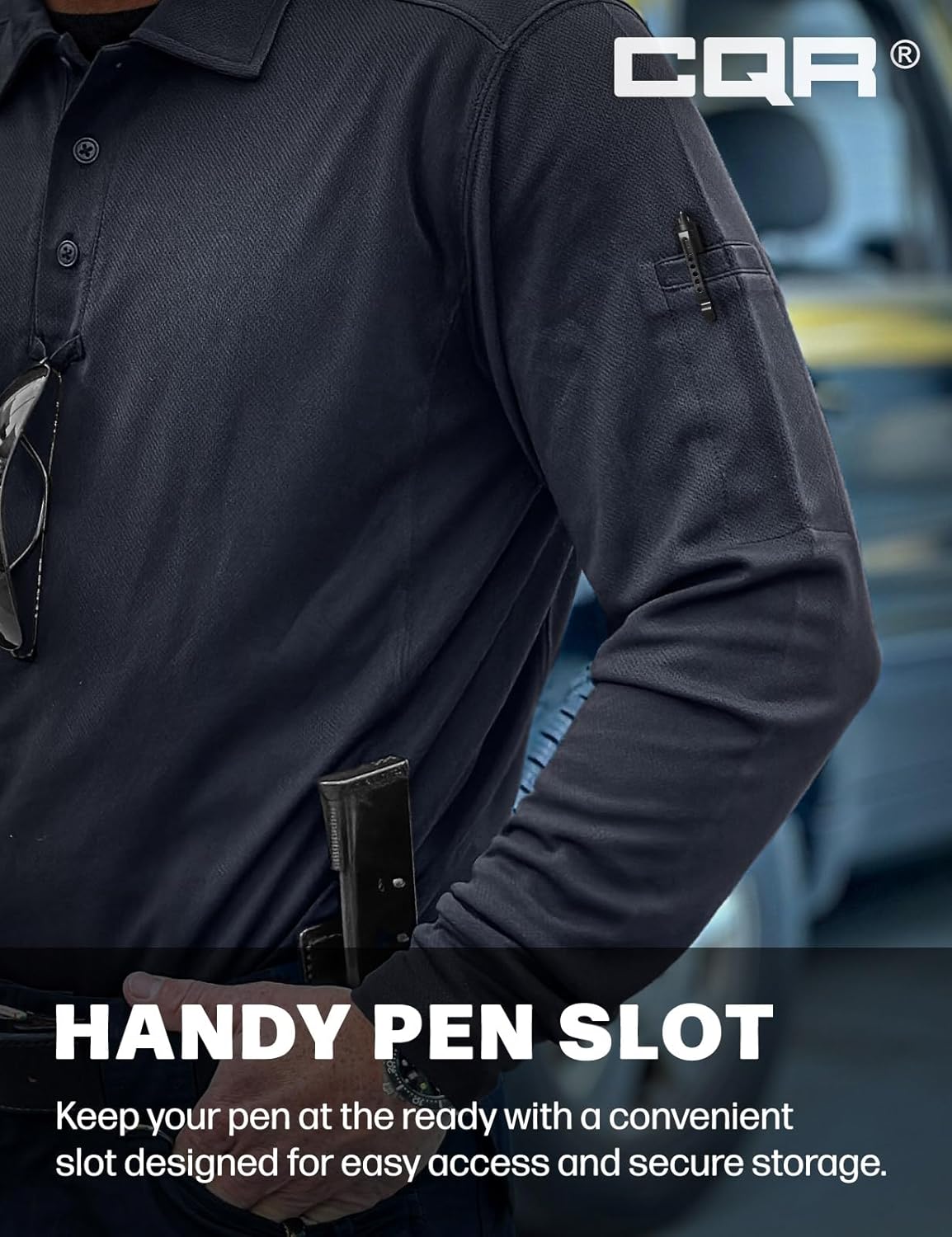 CQR Men's Polo Shirt, Long Sleeve Tactical Shirts, Outdoor UPF 50+ Pique Shirt, Dry Fit Lightweight Golf Shirts