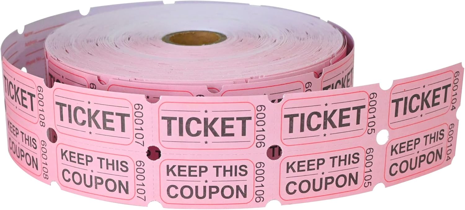 ESSENTIAL 2000 Pink Double Raffle Tickets Rolls Printable for Leisure, Movie Watching, Entertainment