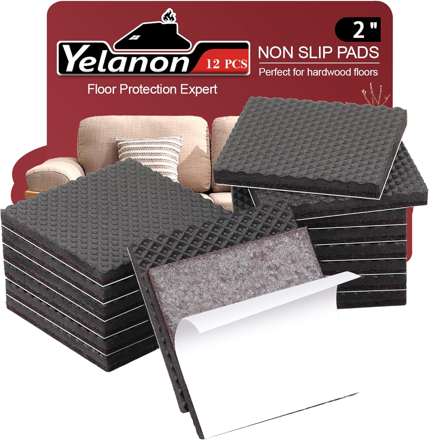 Yelanon Non Slip Furniture Pads-12pcs 2" Furniture Grippers Hardwood Floors Non Skid for Furniture Legs Self Adhesive Rubber - Feet Anti Slide Furniture Floors Protectors for Keep Couch Stoppers