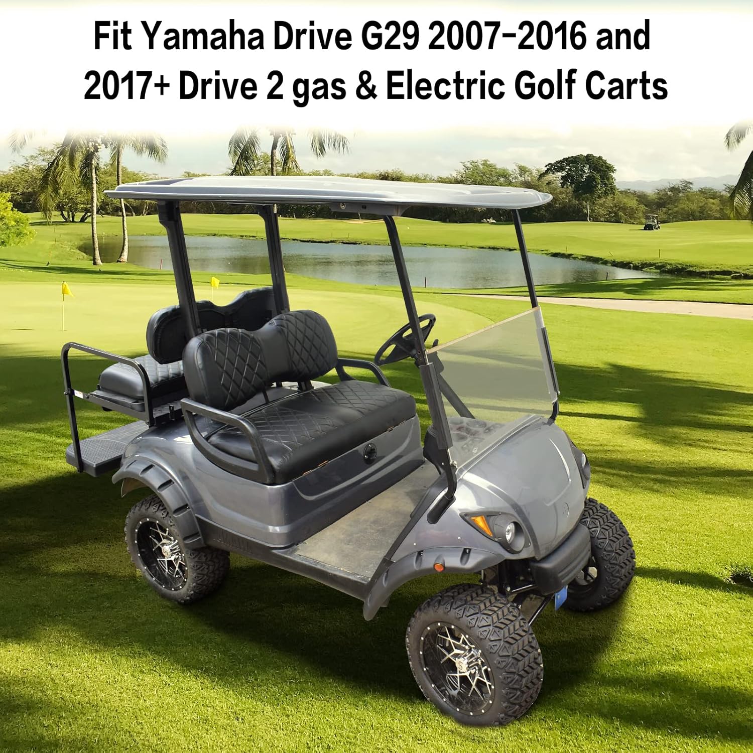 - ăApplicable scopeăNOKINS Golf Car YD diamond front seat cover, this product contains 1 front backrest cover (about 36.8 X 14.12X 5.3 inches) and 1 front seat cover (about 41.5 X 20.1X 5.3 inches), It is suitable for Yamaha to drive G29 2007-2016 and 2017+to drive 2 natural gas and electric OEM Standard golf carts.Note: Not suitable for thicker premium cushions.