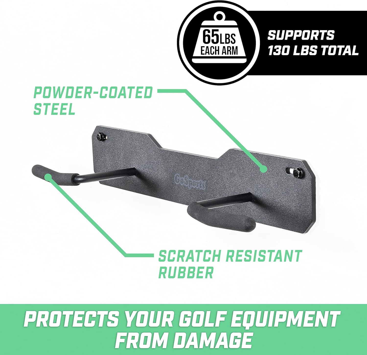 GoSports Wall Mounted Golf Bag Storage Rack - Holds 2 Golf Bags