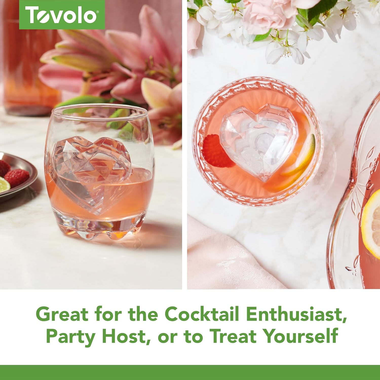 Tovolo Heart Shaped Ice Cubes Mold Pack of 2 Large Craft Ice Molds for Whiskey Bourbon Cocktails, Easy Fill No Leak Silicone Ice Molds Gift for Him Stackable Dishwasher Safe BPA Free Heart Ice