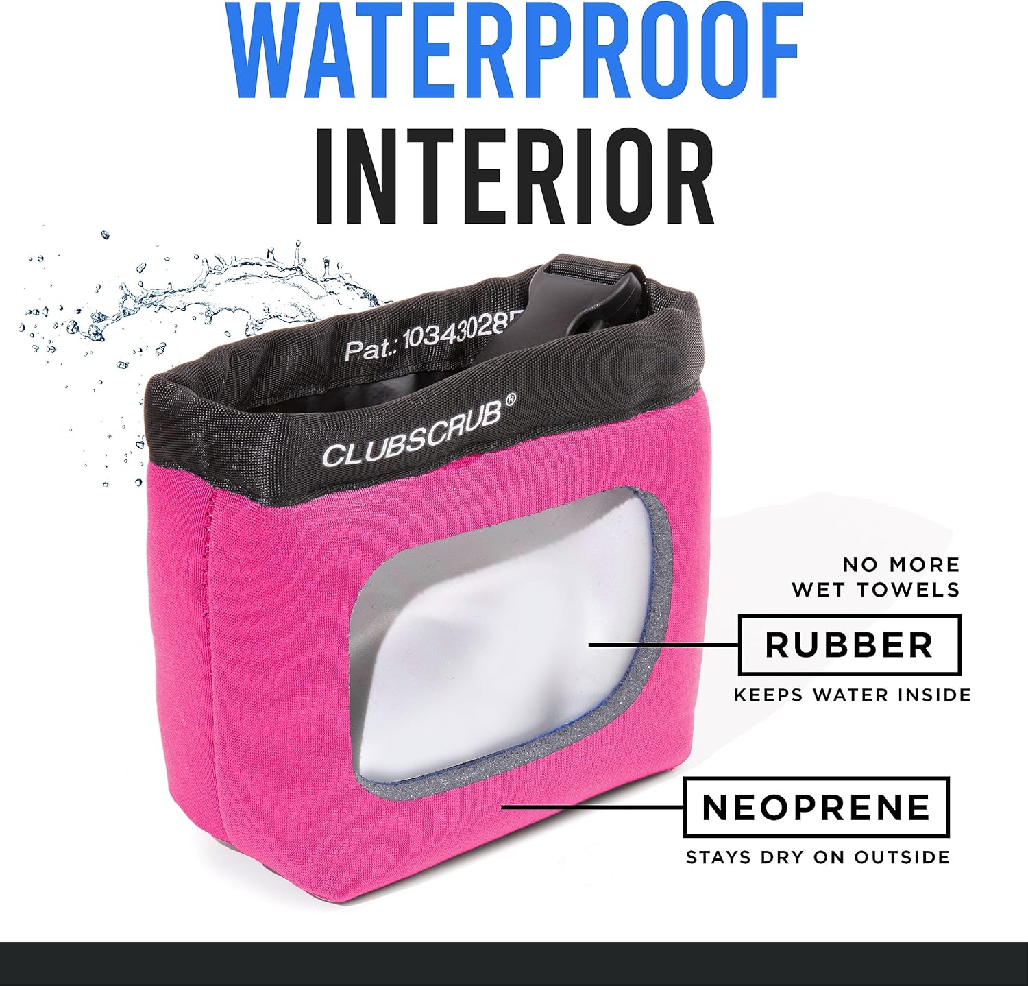Club Scrub Golf Club and Golf Ball Cleaning Bag, Waterproof Clean Face Technology Liner, Detachable Clip, Machine Washable, Cleans Club Grooves, Dry Exterior (Neoprene or Microfiber Option Available)