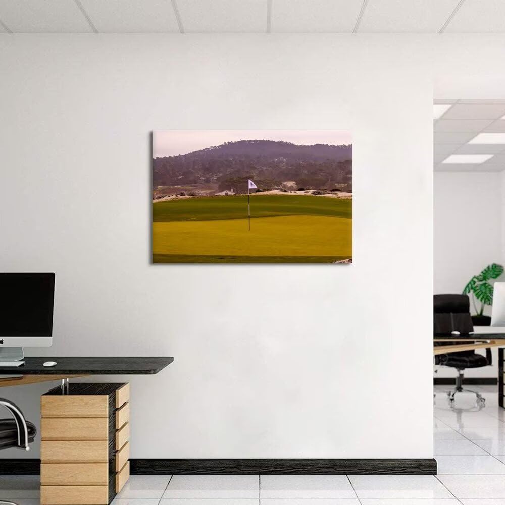 Pebble Beach Golf Course Picture Wall Art for Office Golf Course Canvas Wall Decor for Home Living Room Bedroom Bathroom Decorations Painting Framed Ready to Hang(12''H x 16''W)
