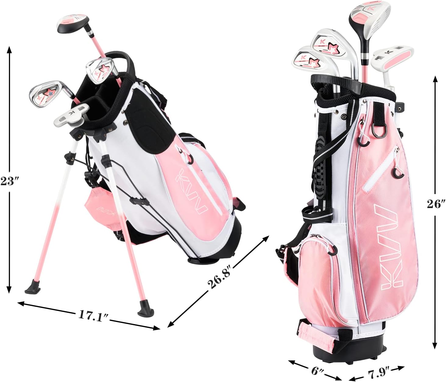 KVV Junior Complete Golf Club Set for Kids/Children Right Hand, Includes Oversize Driver, Irons, Putter, Head Cover, Portable Golf Stand Bag