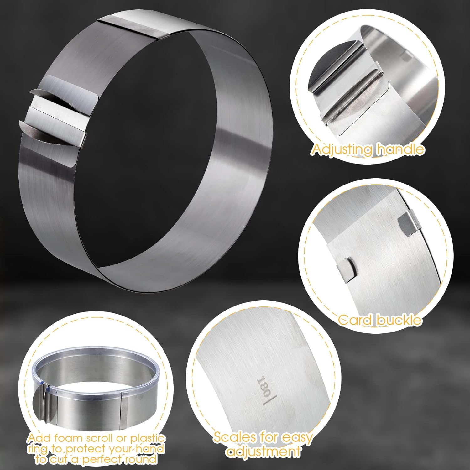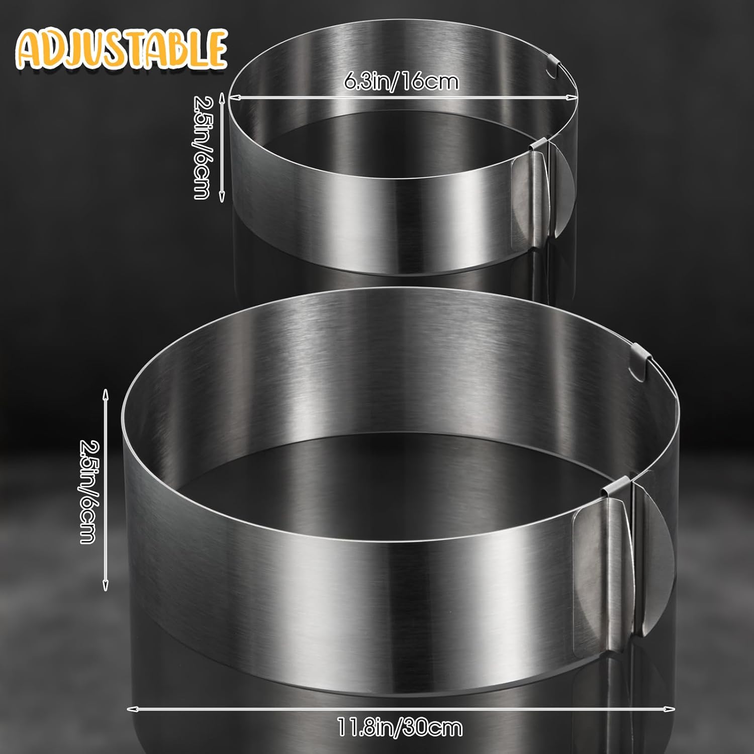 - 6-12 Inches Adjustable Cutter: the round cutters for baking measures about 1.97 inches/ 5 cm in height, and the diameter is adjustable, can range from 6-12 inches, which means you can make cakes in your desired size, optional and convenient