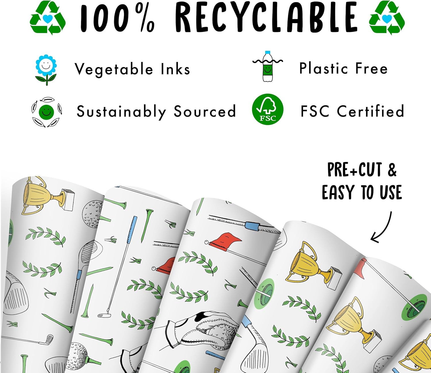 CENTRAL 23 Golf Wrapping Paper - 6 Sheets White Wrapping Paper For Men Dad Grandpa Uncle - Golf Sports Club - Comes With Stickers - Recyclable - Christmas Wrapping Paper Sheets