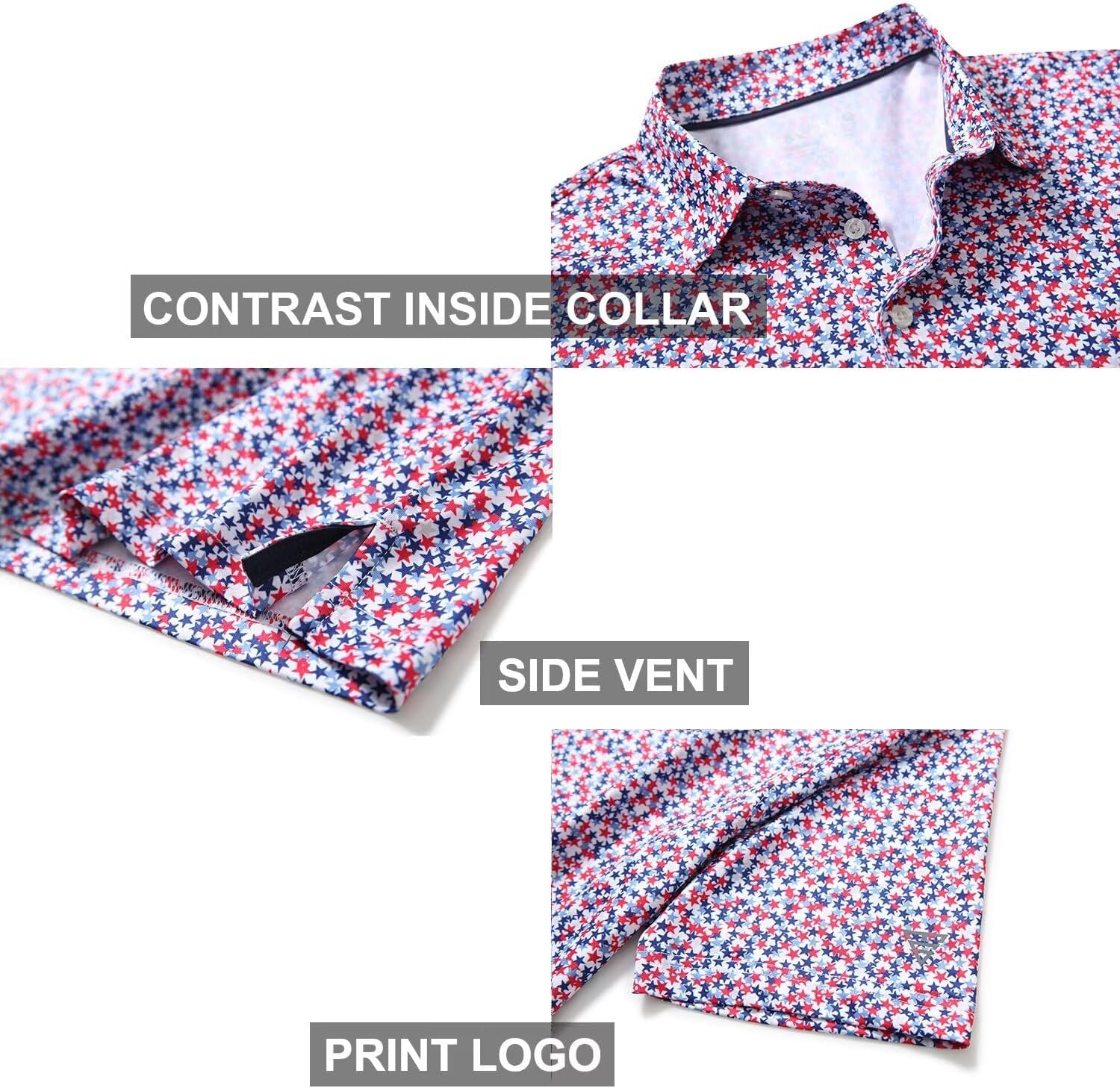 Golf Shirts for Men Dry Fit Short Sleeve Print Performance Moisture Wicking Polo Shirt