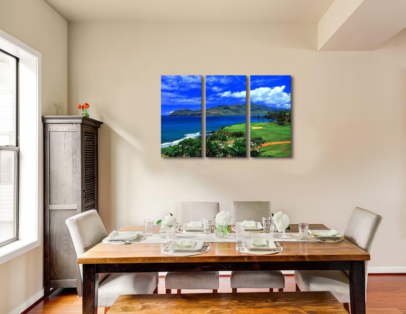 - 💝Golf course canvas wall art will decoration your living room, bedroom,gym room,office,church,hallway,kitchen or farmhouse, dormitory and other wall decorations better than better, you can enjoy the golf course pictures every day.