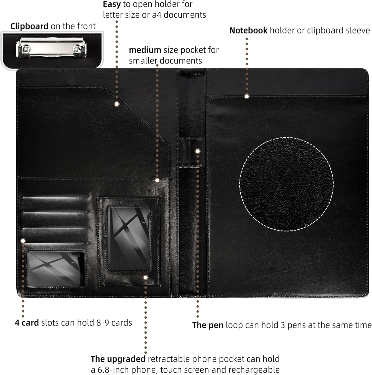 Leather Portfolio for Men Clipboard Notepad Business Black Padfolio Flexible Portfolios