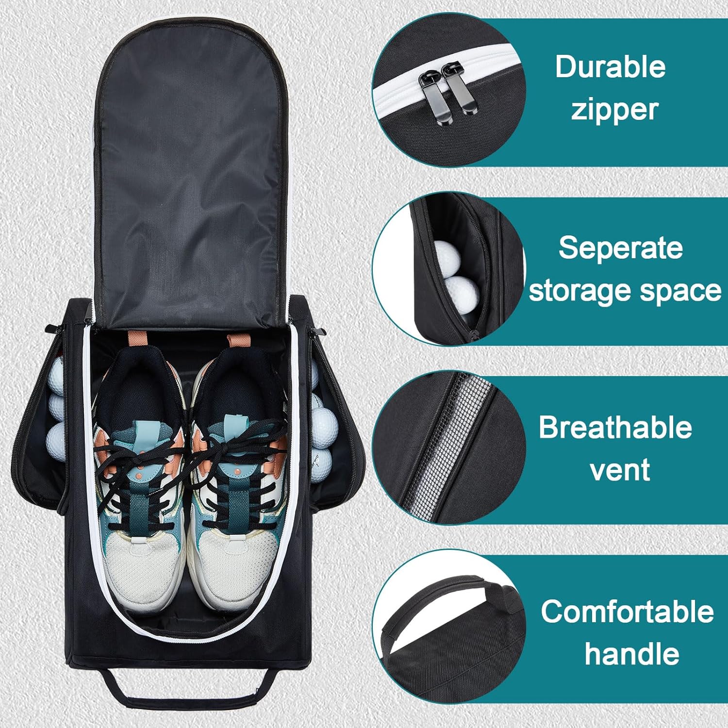 - Functional Outside Pockets: our shoe carrier bags are featured with zipper and breathable surface, to give your sneaker room to breathe, but also get rid of odors; With 2 side pockets, you can use the small pockets to store golf balls, tees, socks, and other items, bringing you a lot of convenience
