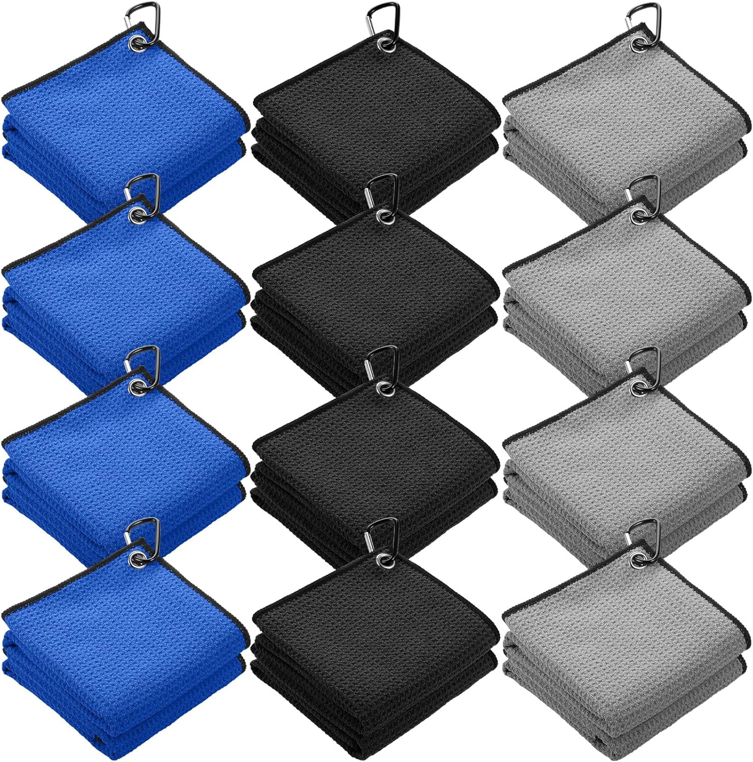 Batiyeer 12 Pcs Golf Towel Bulk for Golf Bags 16'' x 16'' Microfiber Fabric Towel with Clip Waffle Pattern, Fitness, Camping, Hiking, Yoga