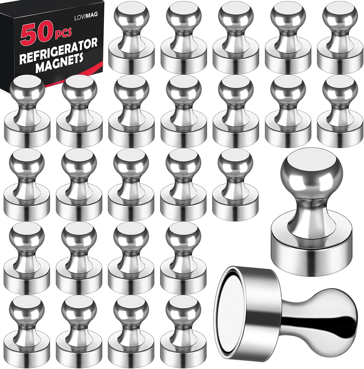 LOVIMAG Fridge Magnets 50 Pcs Refrigerator Whiteboard Small Strong Magnet Classroom Kitchen Accessories Decorative Locker Set Decor Must Haves Office Calendar Refrigerador Magnetic Cute Crafts Silver