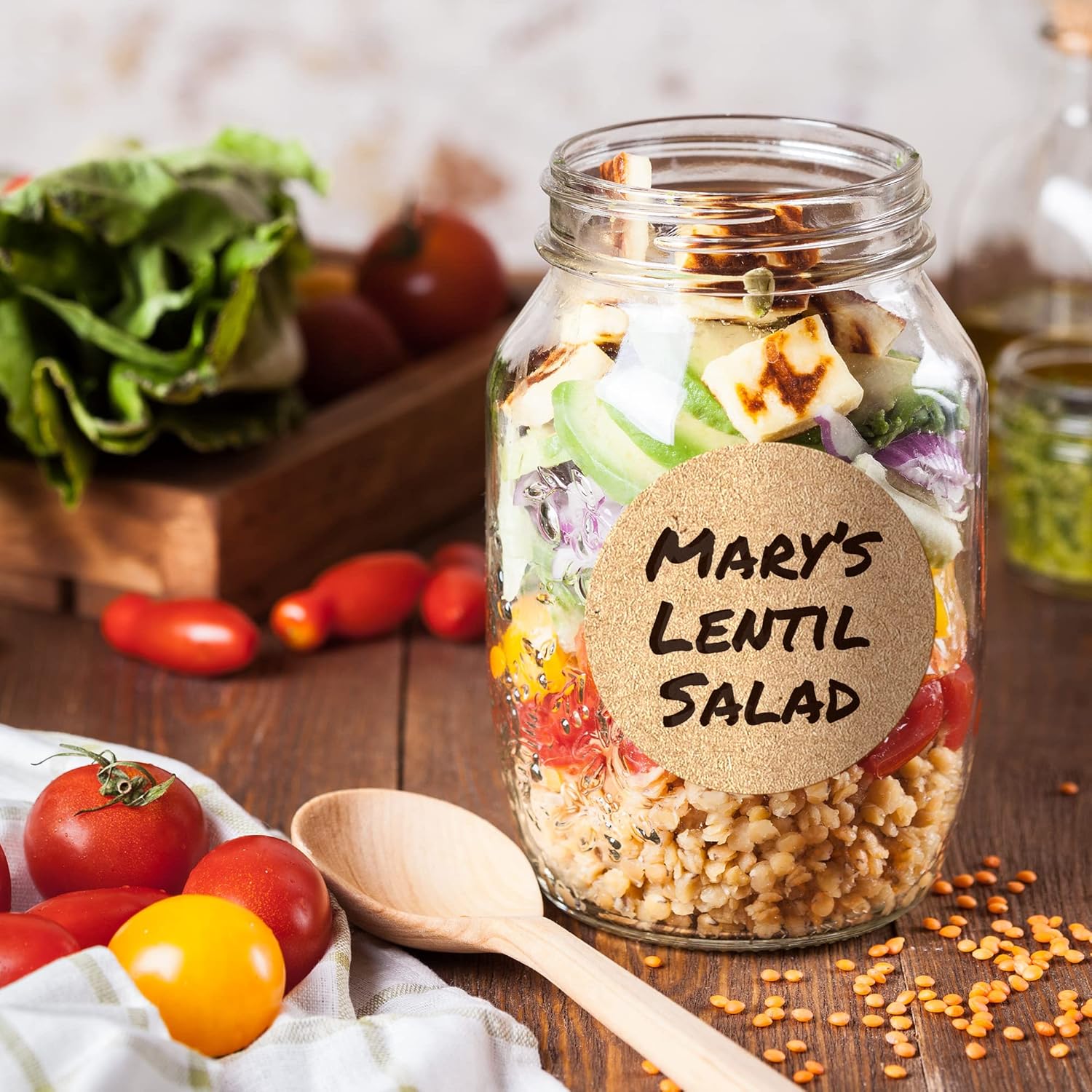 - Tidy Up – Keep your jams, food prep, pantry, or freezer organized thanks to your dissolving labels for mason jars. DIY Delight – Have fun proudly labeling your homemade creations with mason jar round labels.