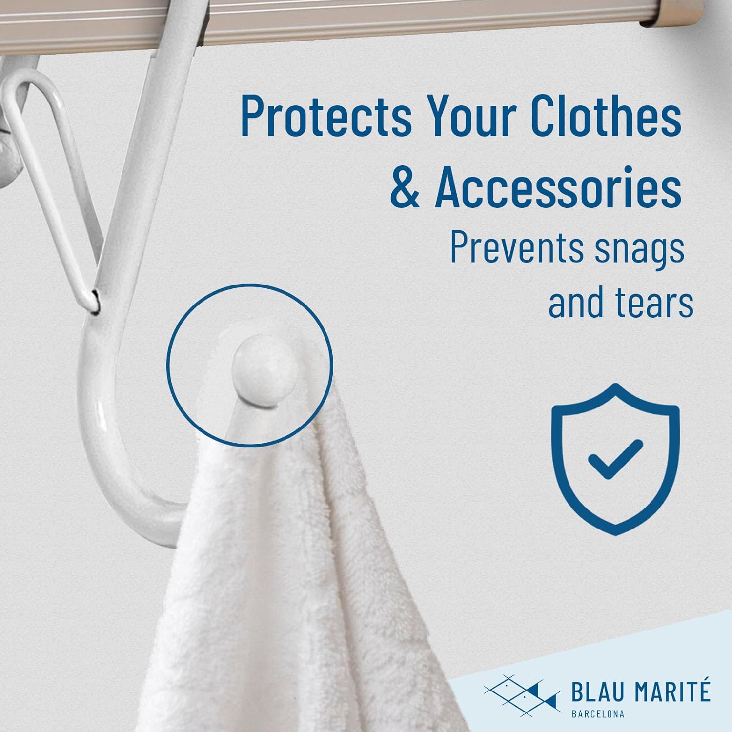 10-Pack Metal S Hooks for Hanging – Heavy-Duty S-Shaped Hooks with Safety Buckle – Fits Bars up to 0.6 in – Anti-Drop Hooks for Kitchen, Pot Racks & Towel Bars – White (Small)