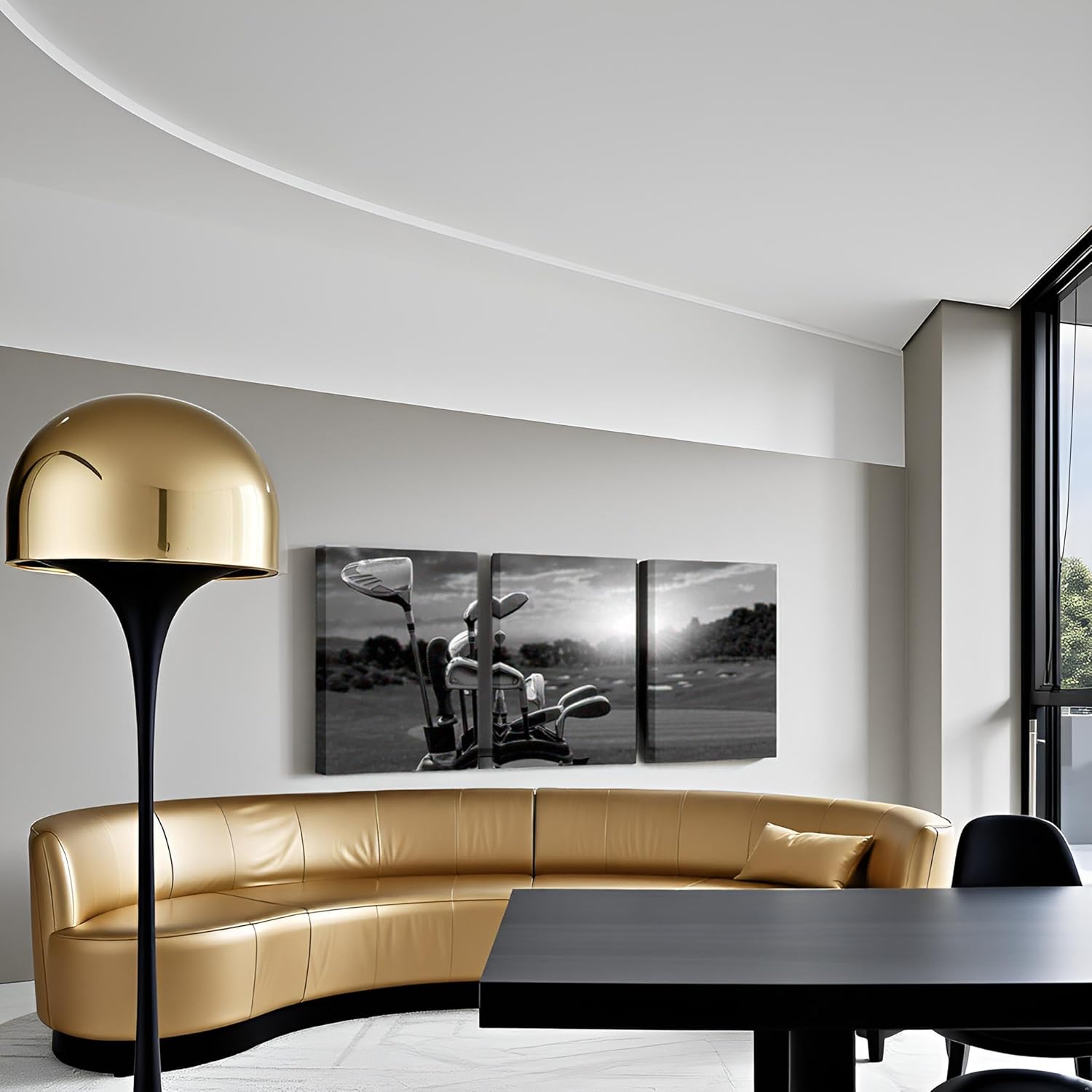 LevvArts 3 Panel Black and White Golf Canvas Wall Art Golf Course at Sunset Landscape Pictures Painting Golfing Sports Artwork Decor for Living Room Gym Ready to Hang (Small)