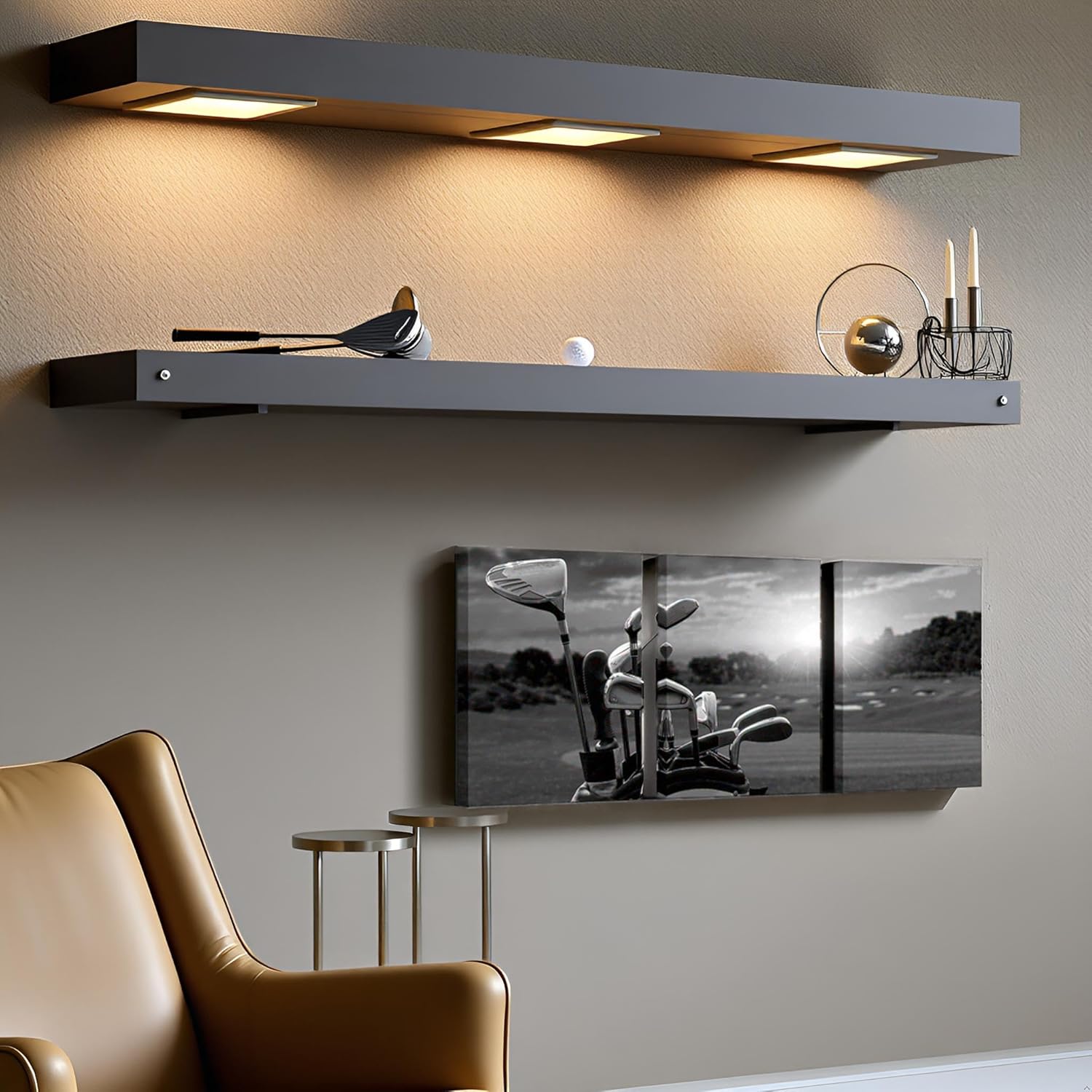 - Each panel canvas art has a black hook already mounted on the wooden bar ready to hang out of box