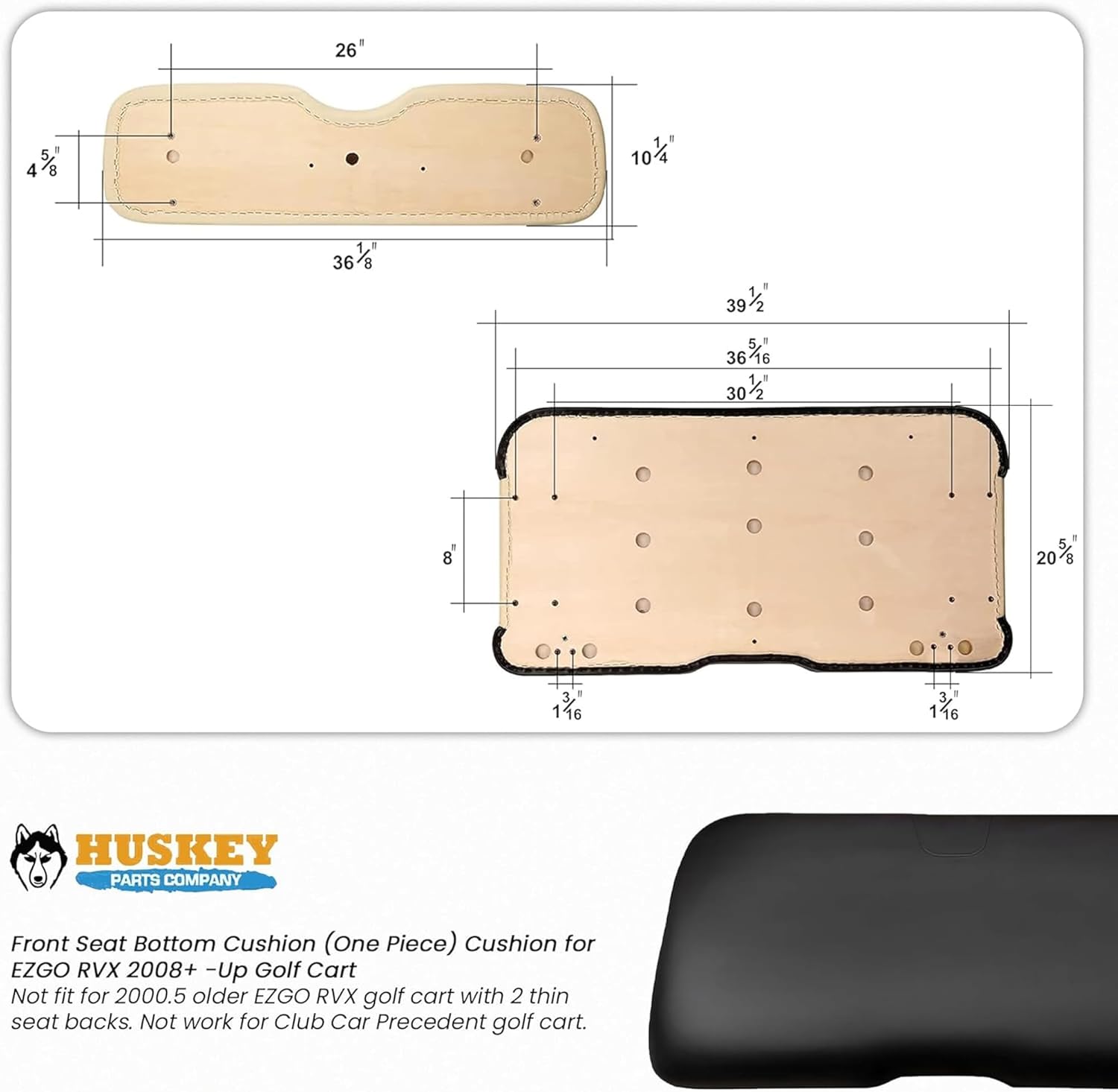 Huskey Parts Company Golf Cart Seat Cushion Black Color Front Bottom Seat for EZGO RXV 2008 and Up, Golf Cart Front Seat Replacement with Mounting Hardware