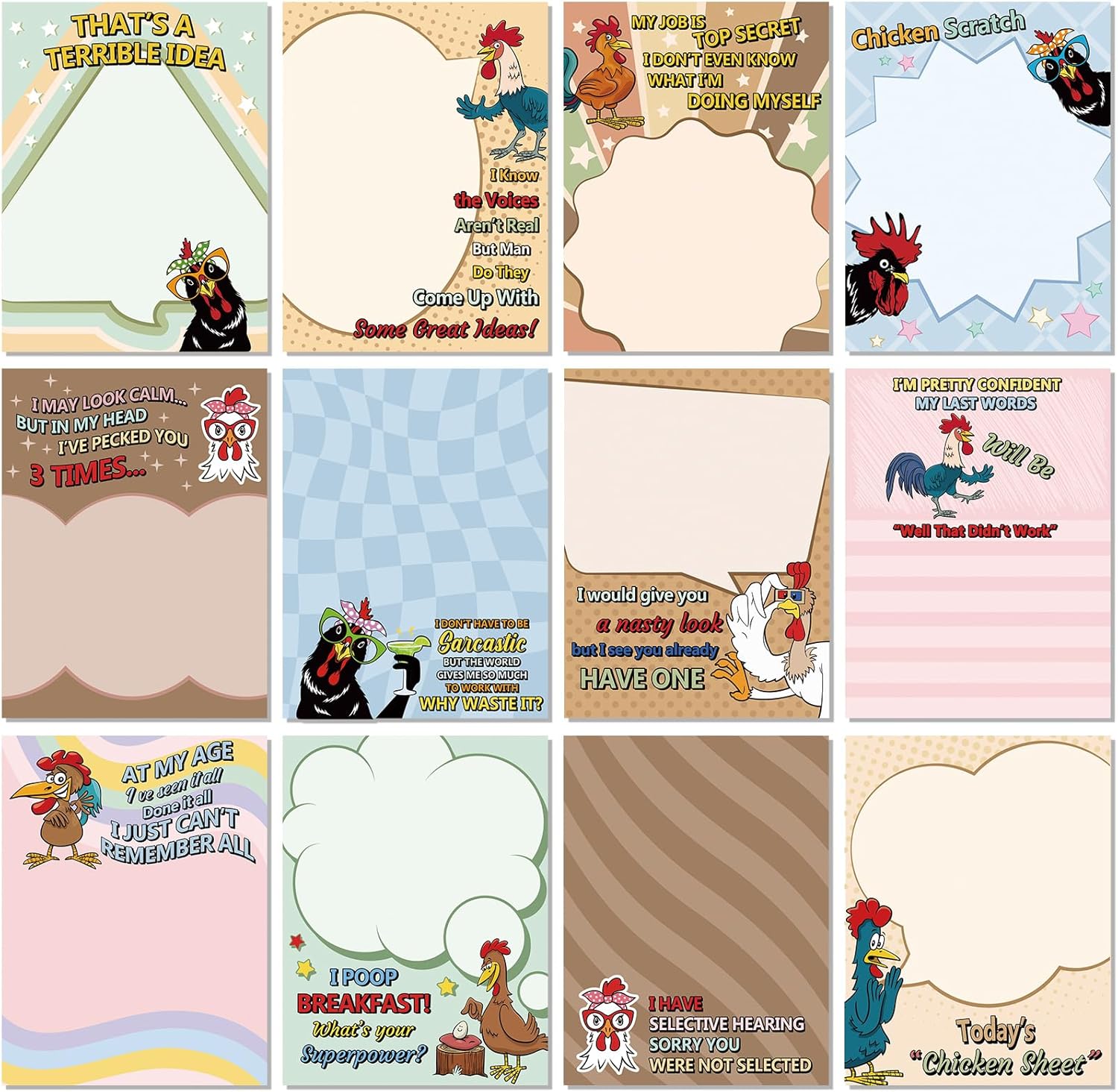 - You're provided: each package comes with 12 pieces of sarcastic notepads in different styles, 30 sheets of each notepad; These sarcastic memo pads are appropriate for storing key information while showing how you really feel, and sufficient quantity can satisfy your daily demands