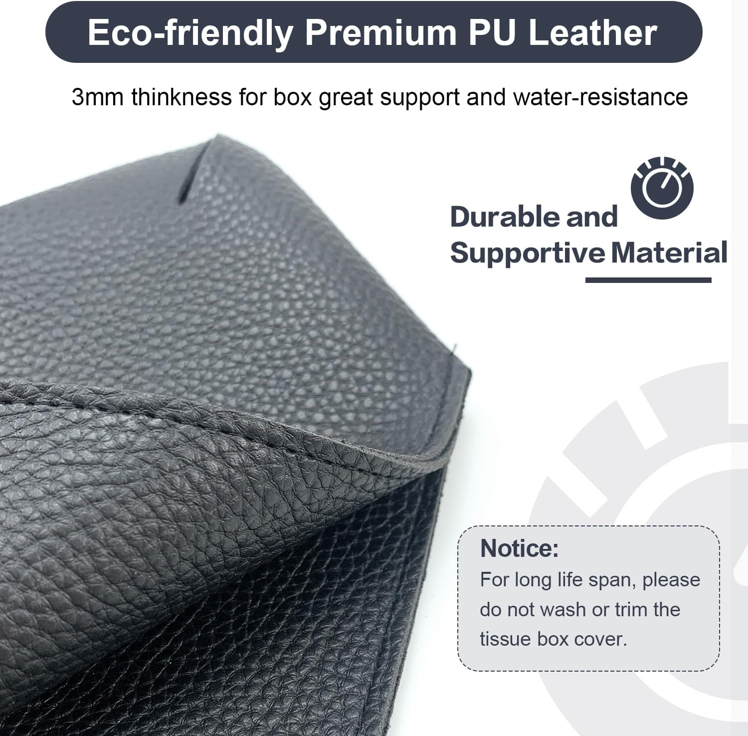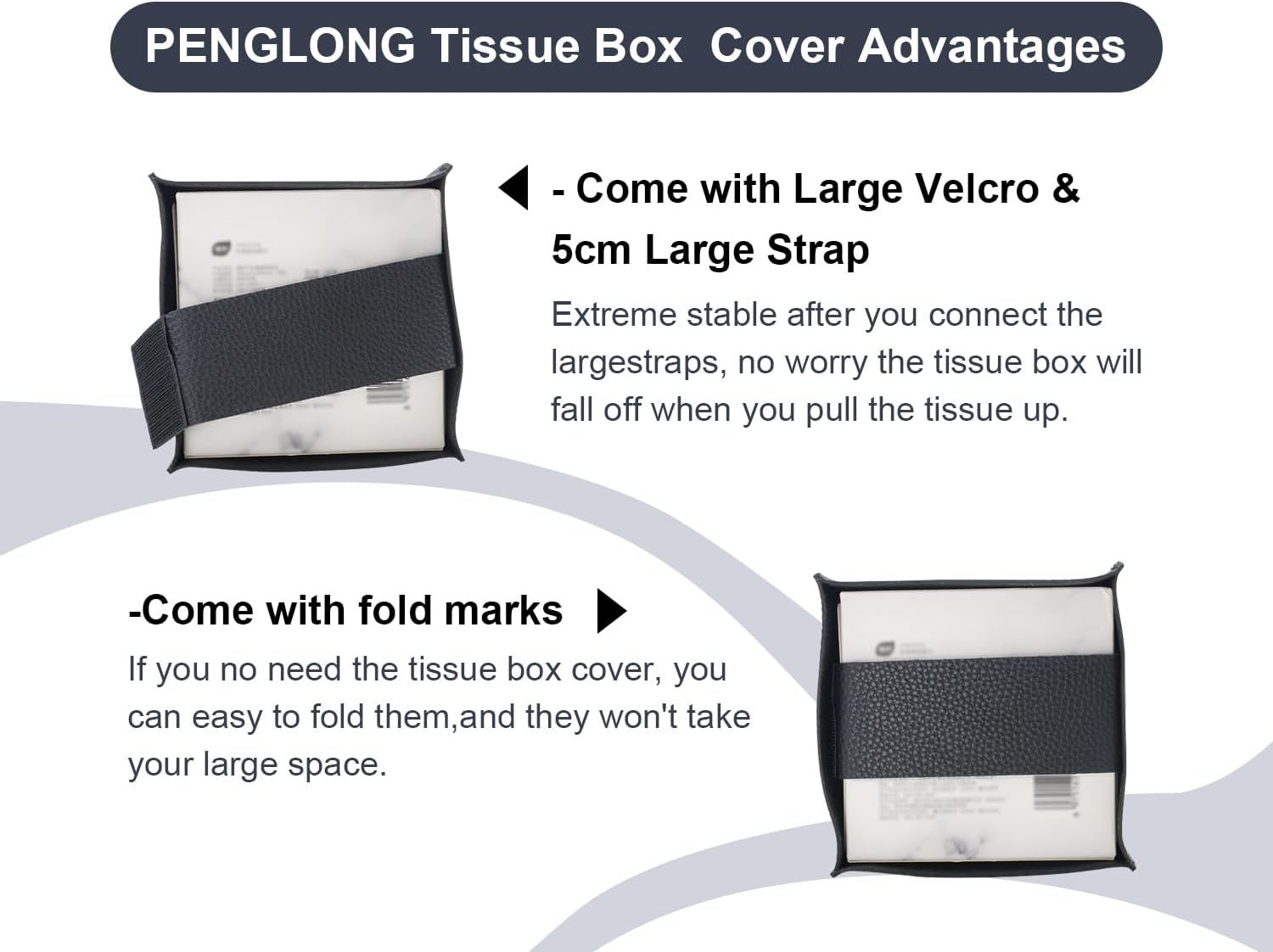 - [PREMIUM PU LEATHER] PENGLONG tissue box cover made with high quality PU leather material, 3mm thikness, which can provide better support for the tissue box. For better pulling out, we adapt the softer material and larger opening so that you can easy to pull out your tissues, no paper jamming.