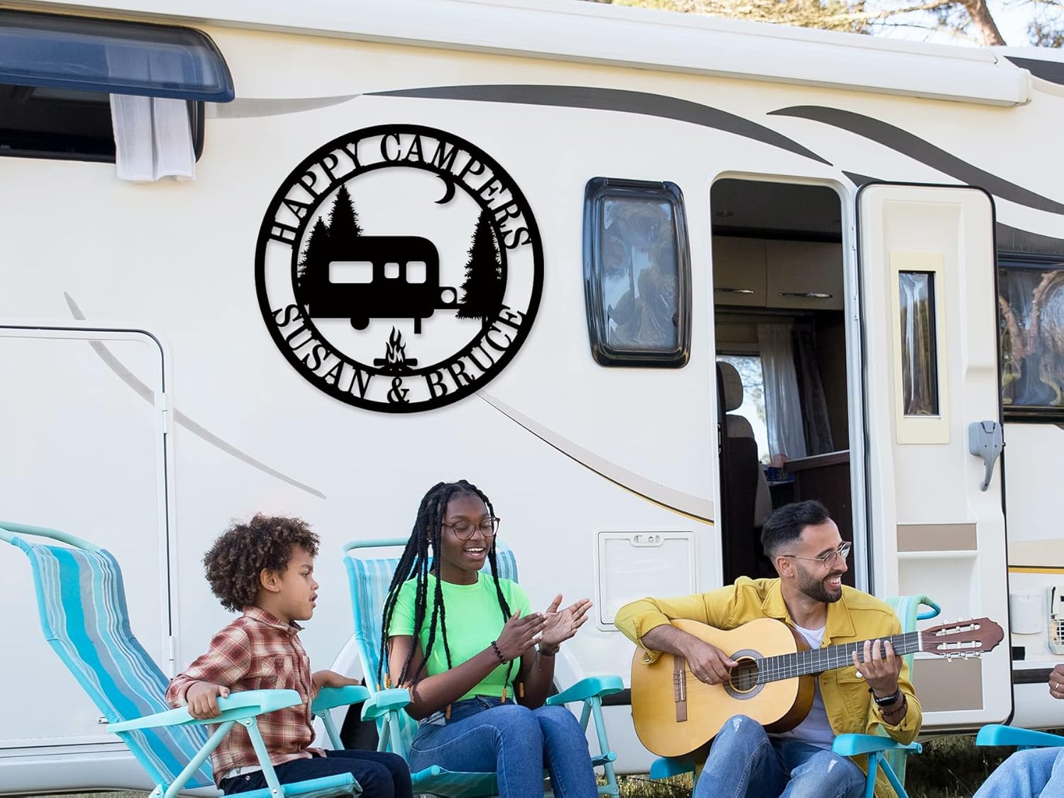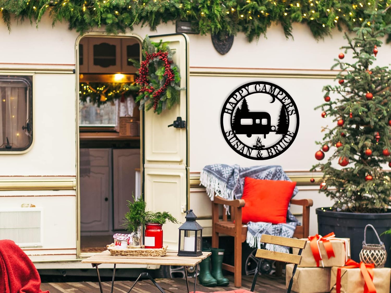 Personalized Happy Camper Metal Sign, Custom Campground Sign, Custom Happy Camper Yard Signs, Hanging Camping Signs, Camping RV Decor