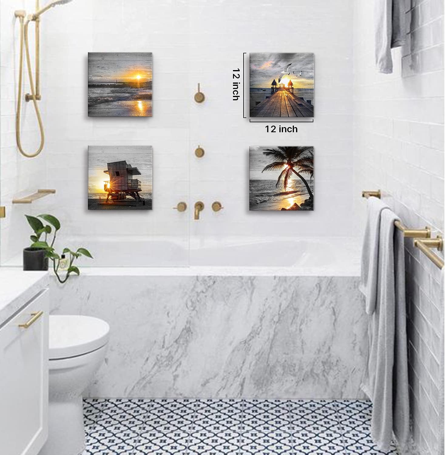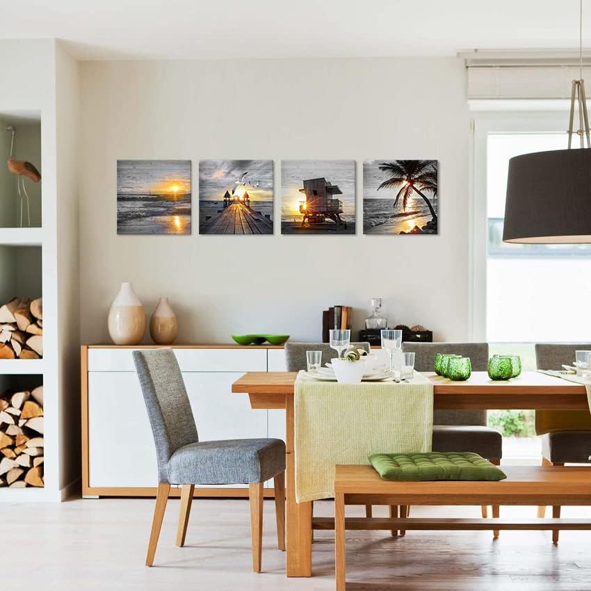 - 🌊Beach wall art picture for bathroom SIZE:12"x12"x4pcs (30x30cmx4pcs)