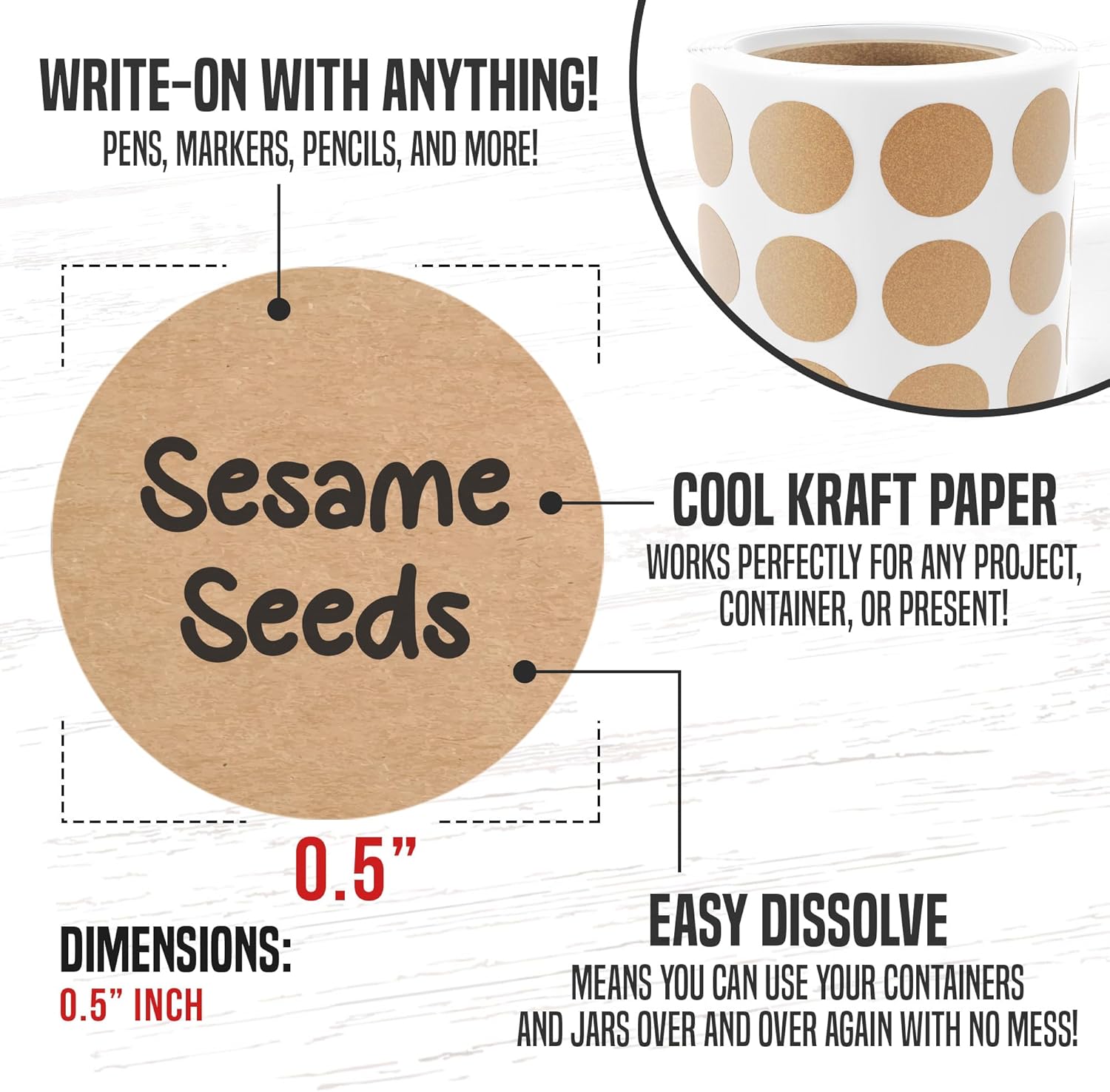 MESS Dissolvable Canning Labels, 0.5" Round, 200-Pack – Removable Kraft Mason Jar Stickers for Homemade Jam, Food Storage & Containers