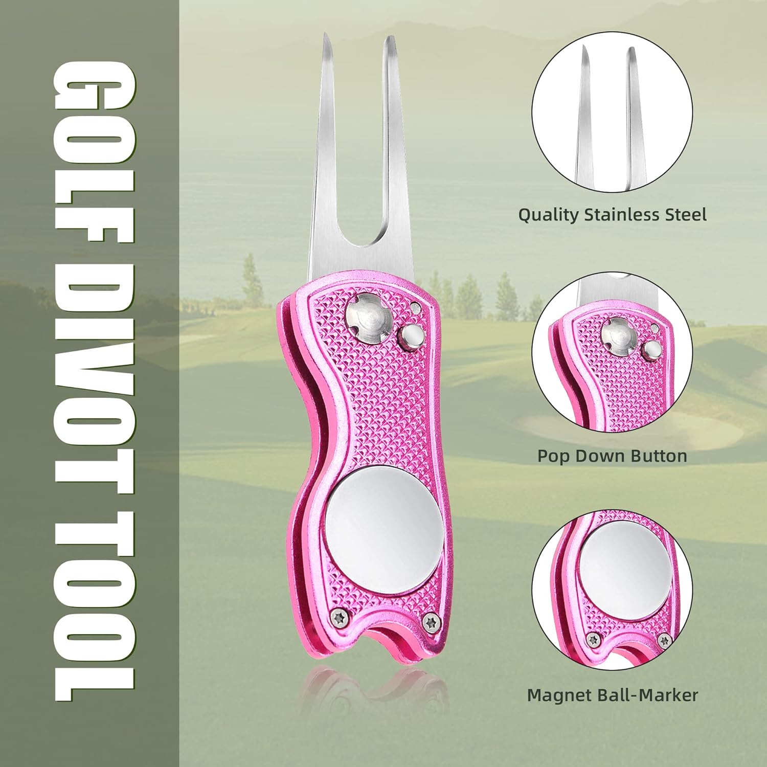 Mile High Life Golf Divot Repair Tool, All Metal Foldable Divot Tool with Pop-up Button & Magnetic Ball Marker, 2-6 Pack