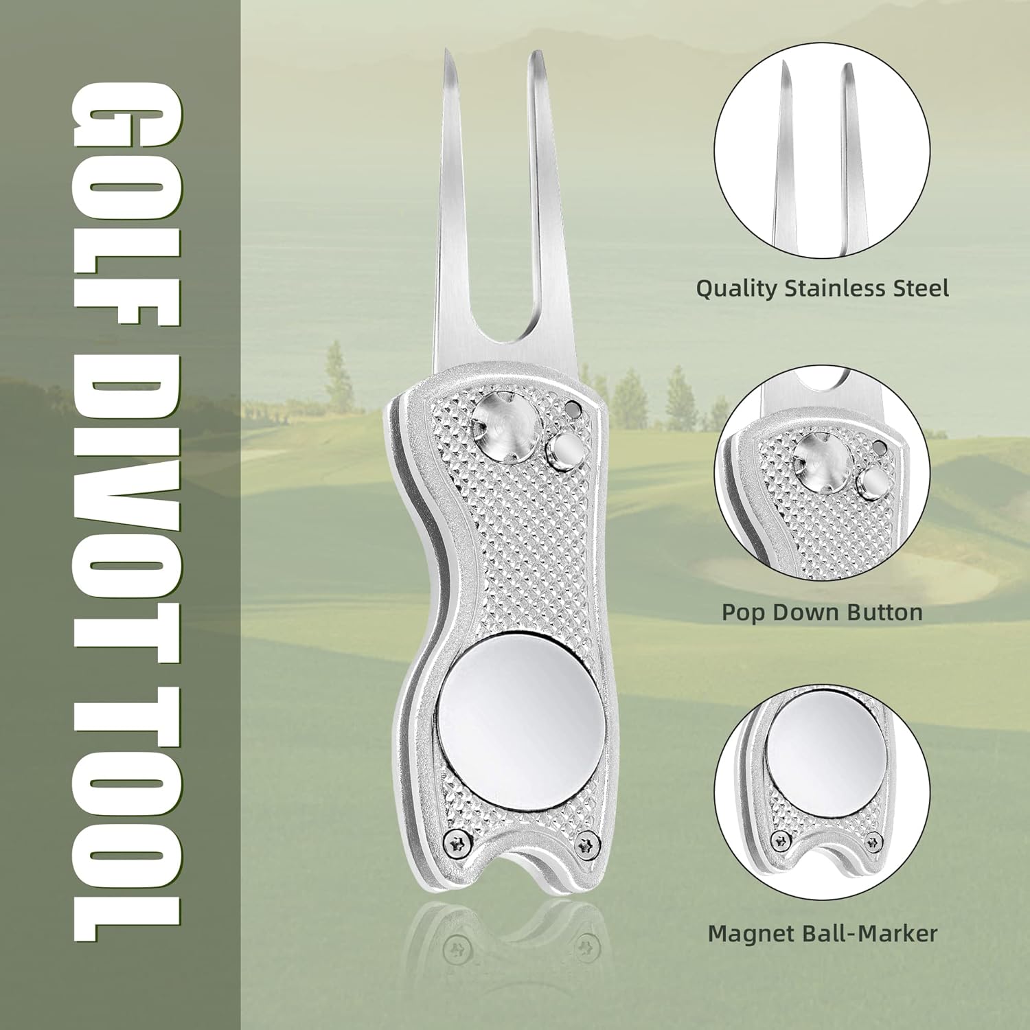 Mile High Life Golf Divot Repair Tool, All Metal Foldable Divot Tool with Pop-up Button & Magnetic Ball Marker, 2-6 Pack